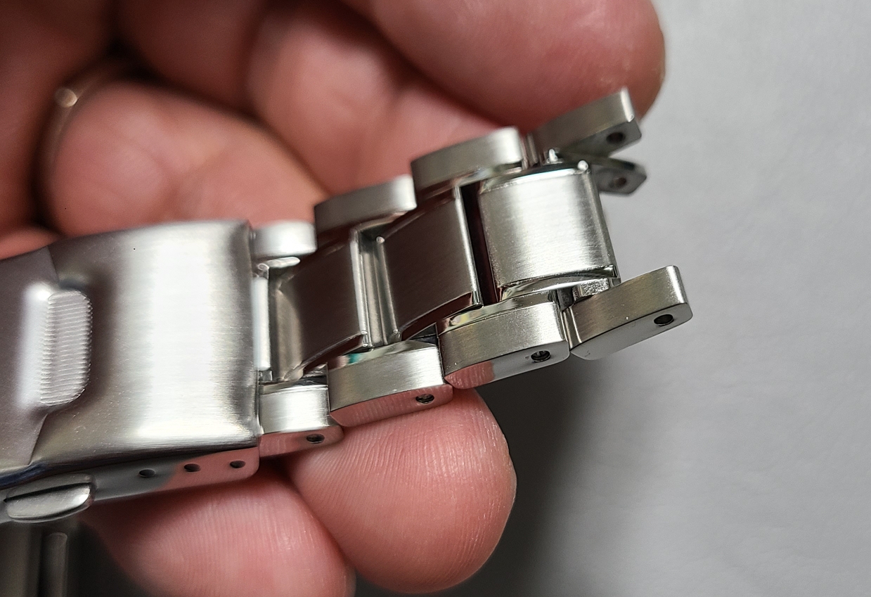 브레이슬릿을 줄이려고 빼보았더니 작은 사슬이 양 쪽으로 별개의 움직임을 보여줍니다. 한 덩어리인줄 알았는데 디테일이라 보아야 할까요?