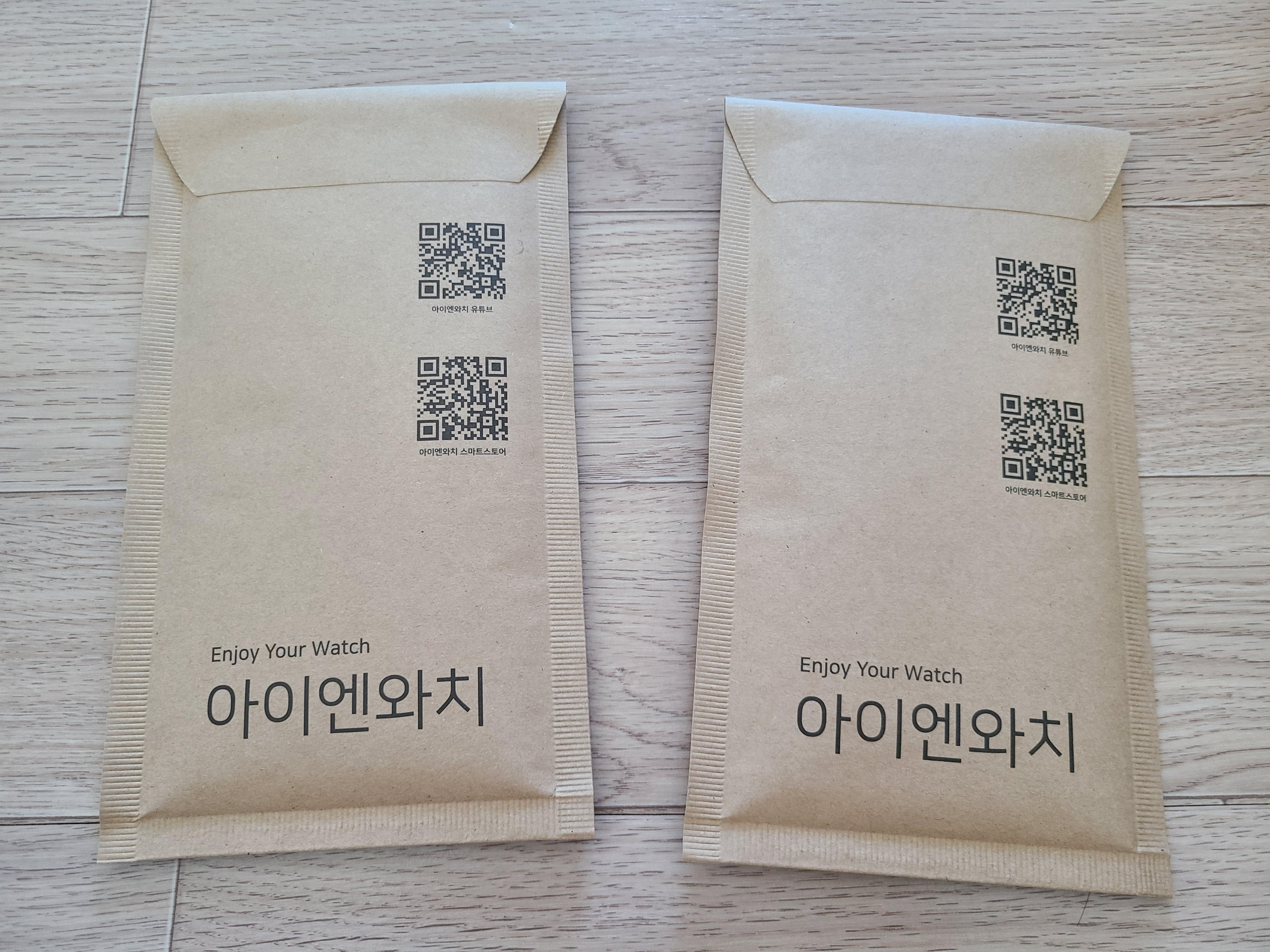 이렇게 두 개의 스트랩이 각각 포장된 상태로 큰 박스에 담겨서 왔습니다. 종이 안쪽에는 에어캡이 있어서 파손의 위험이 거의 없어보였습니다.
