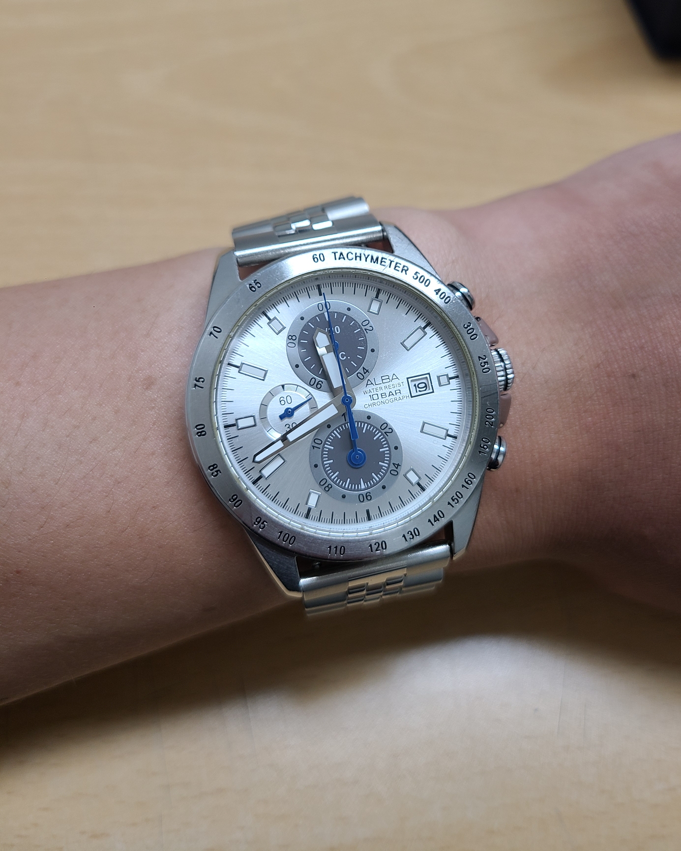 이 시계를 구입했던 시기는 2011년도로 기억합니다. 벌써 13년 전의 일이네요. 그간 배터리만 교환하면서 지냈는데요. 은판의 다이얼에 각진 인덱스와 시침 및 분침, 그리고 푸른색의 침들이 주는