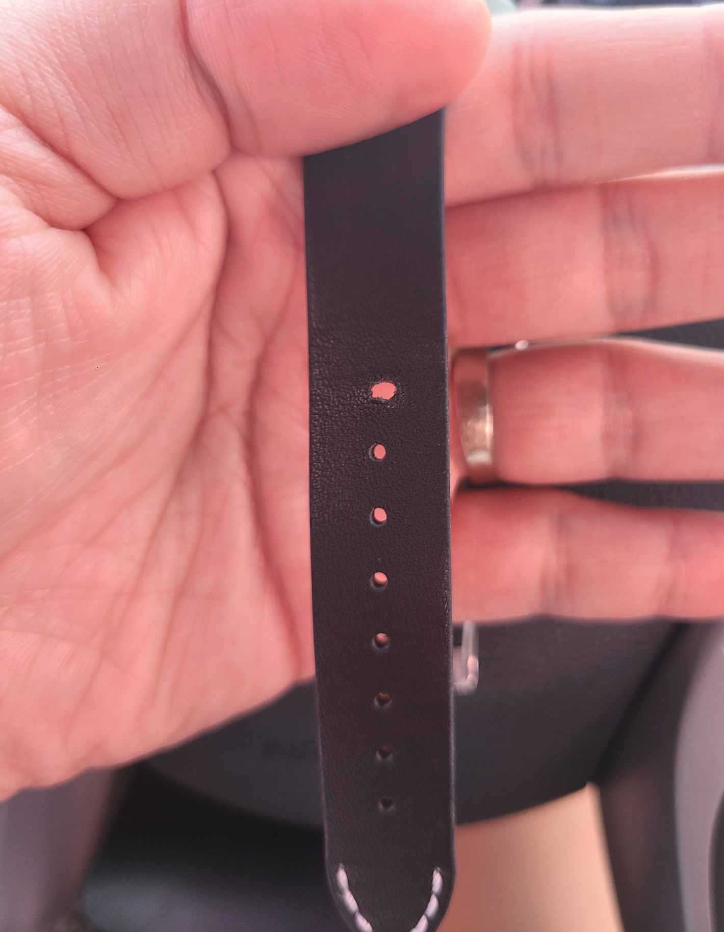 스트랩이 너무 깁니다. 구멍을 뚫다가 약간 어긋나서, 흉하게 되었습니다.