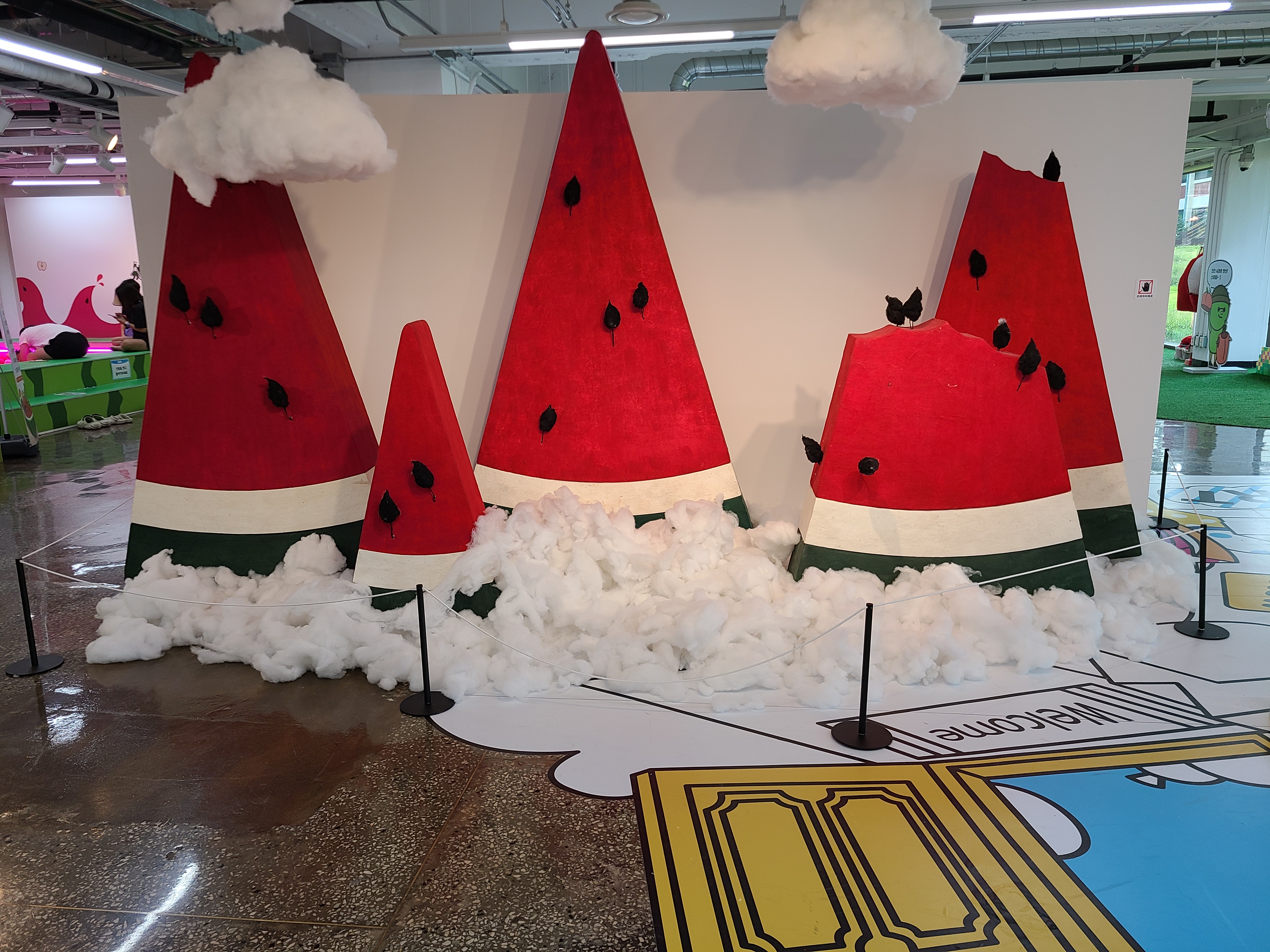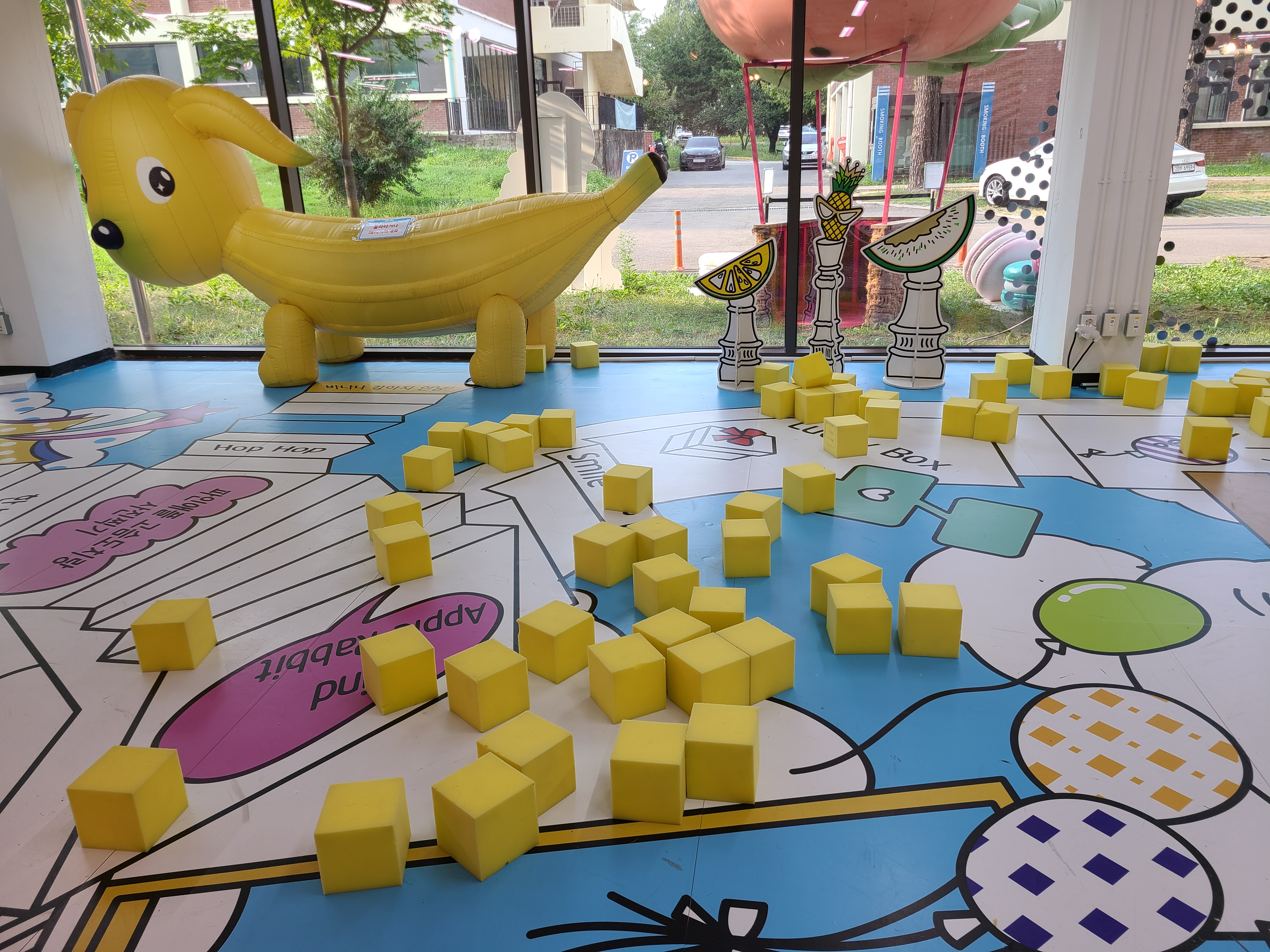 수박 수영장인데, 검은색의 공으로 수박씨를 표현한 듯 합니다. 인기가 많아서 아이들이 항상 많았습니다.