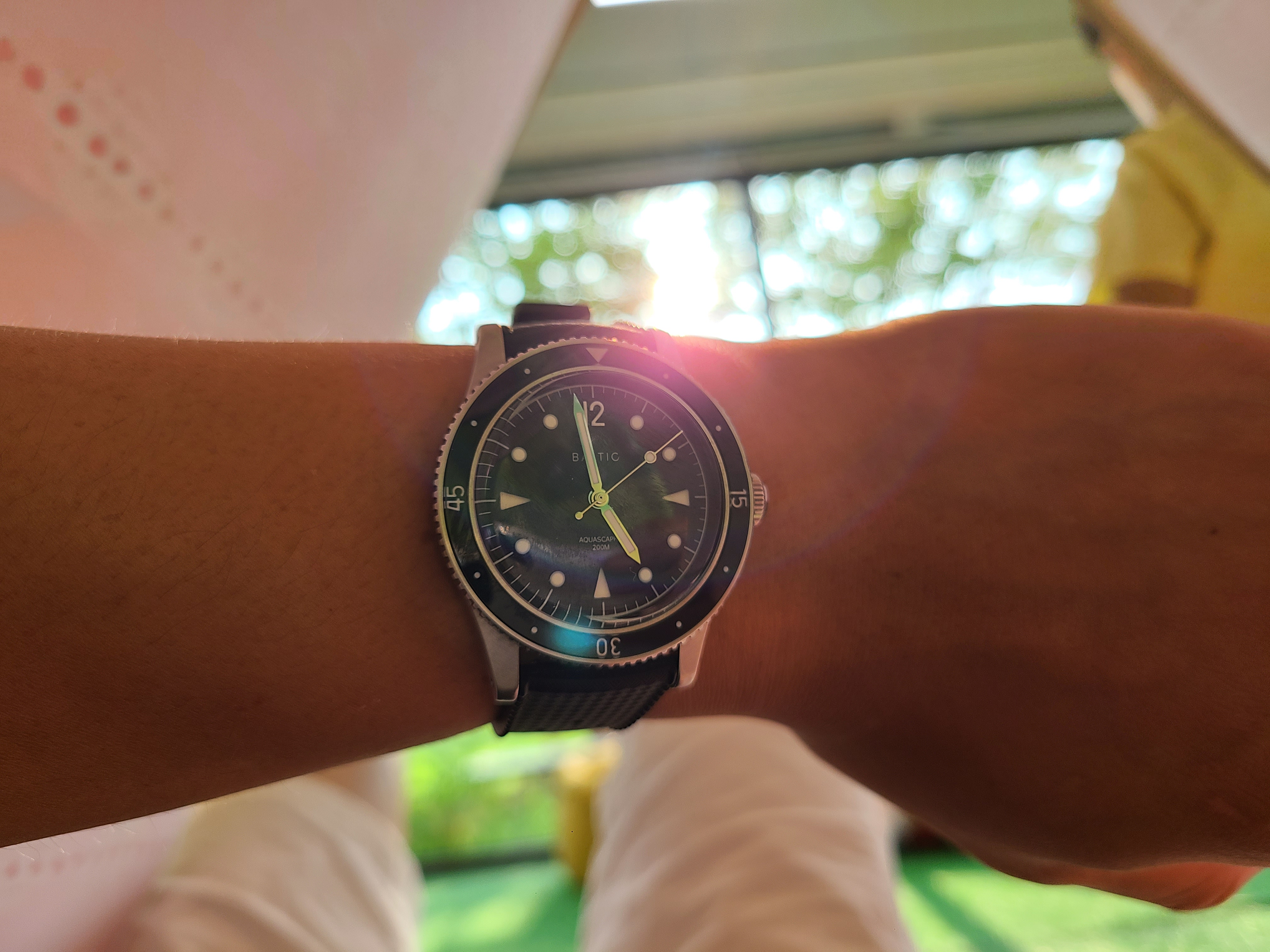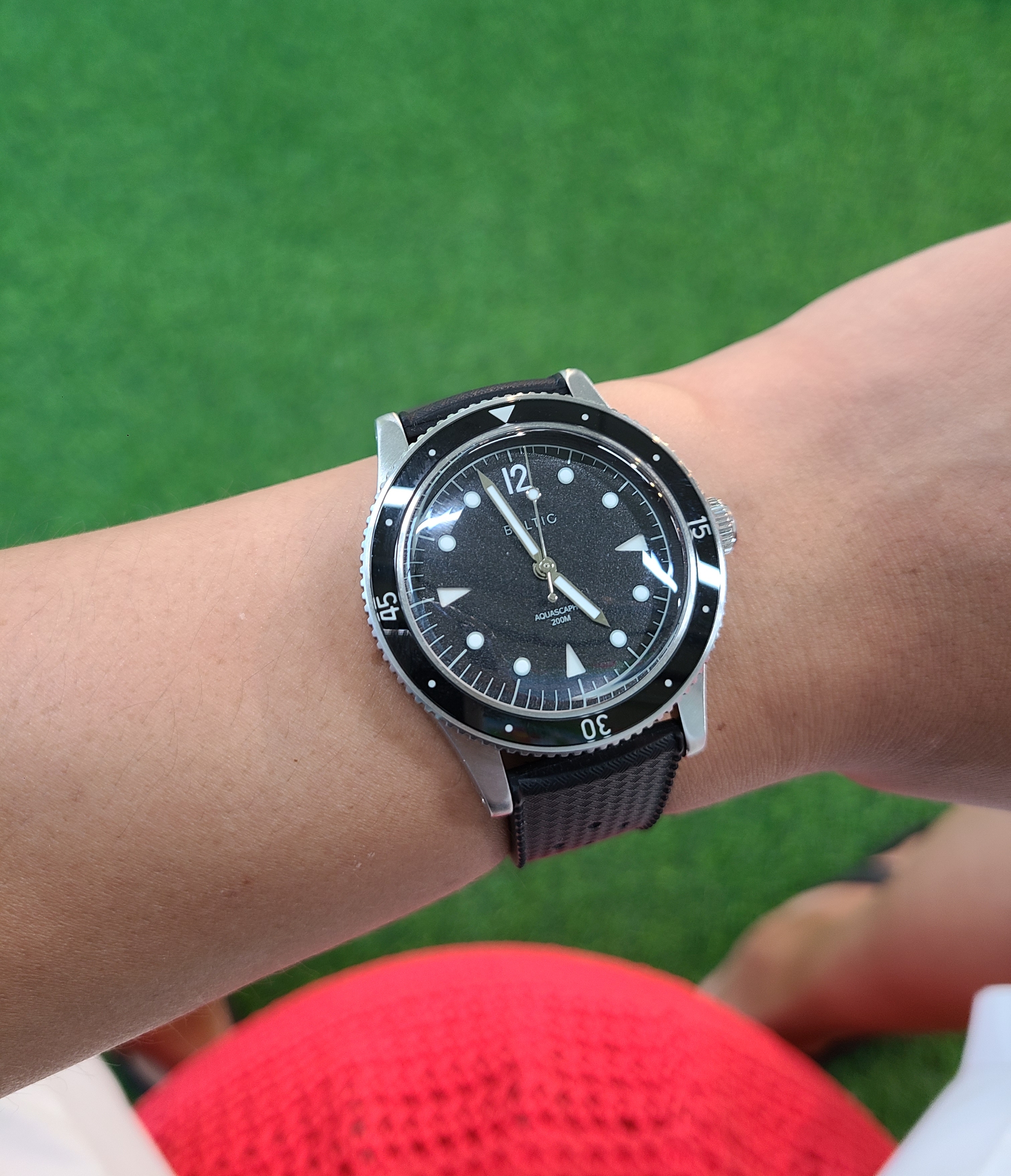 이번 여름 FKM 러버스트랩을 사용해보니 확실히 발틱의 러버스트랩이 뻣뻣한 편인 것 같습니다. 그래도 두께가 얇고, 버클로 내려오면서 폭이 좁아지는 모양새가 이 시계에 가장 잘 어울리는 것 같아서 다른 스트랩을 사용하기가 꺼려지긴 합니다.
