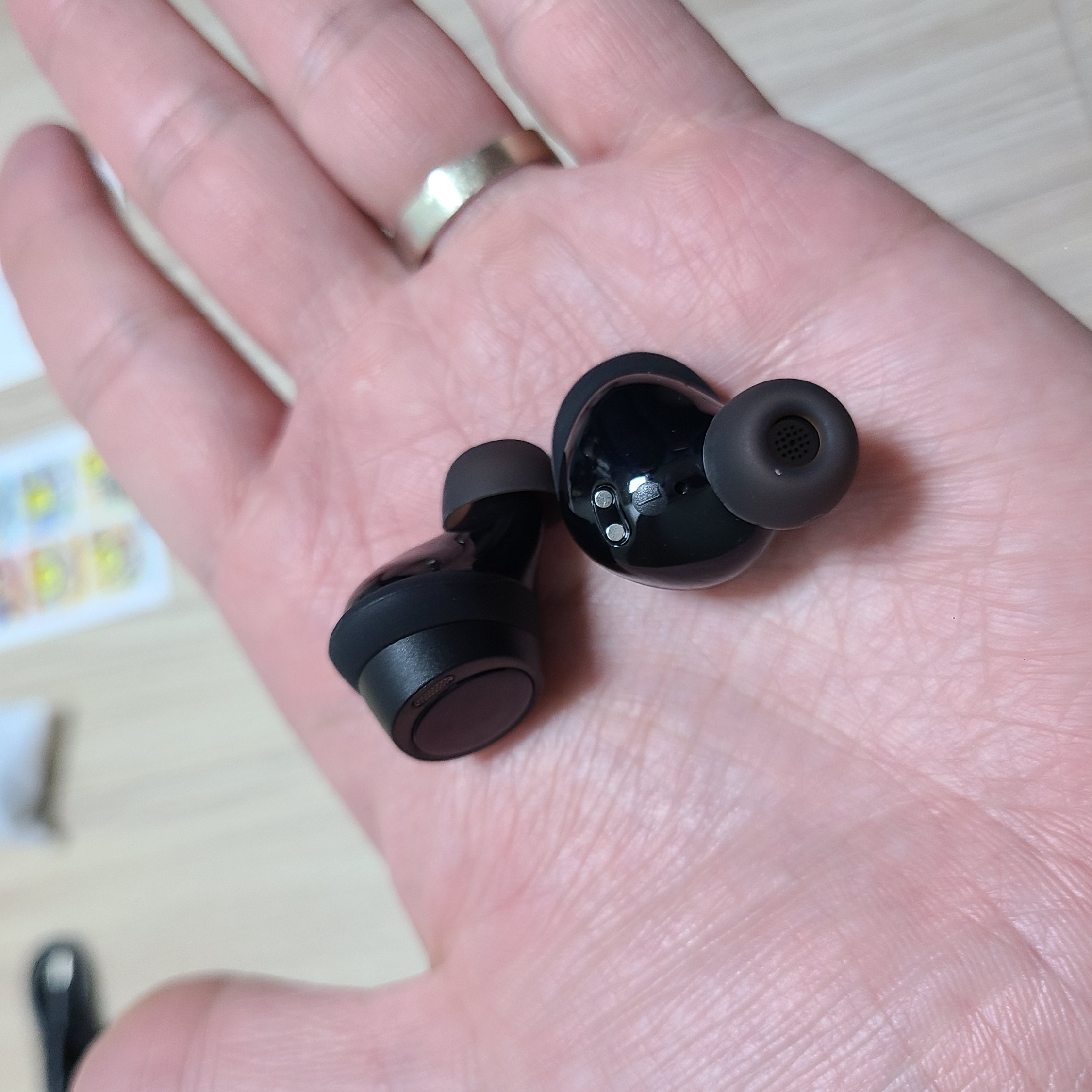 본격적으로 제품을 살펴보겠습니다. 케이스는 이전에 사용하던 버즈 라이브 케이스보다 큽니다. 버즈는 와이프가 사용하게 되어서 이어폰이 하나 더 필요하게 되었습니다.
