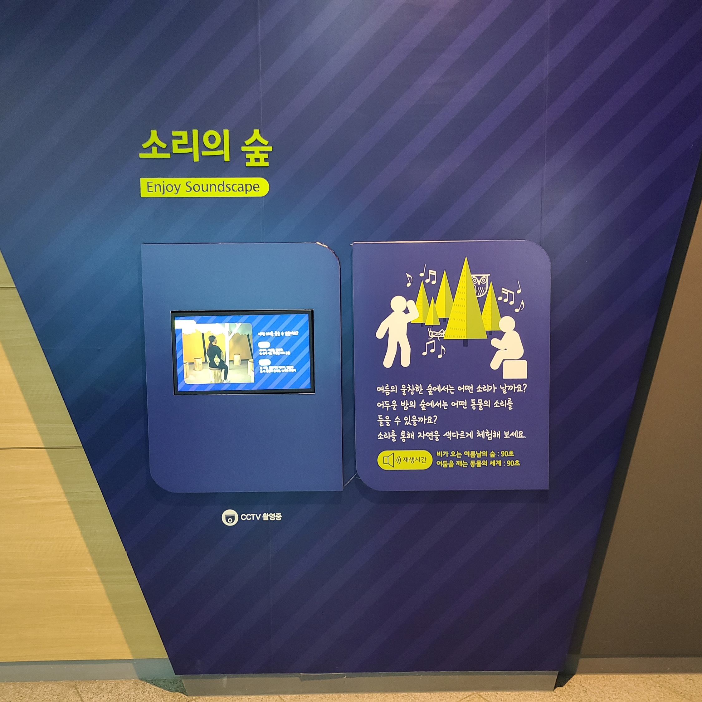 소리의 숲이라는 테마인데, 여러 동물들의 울음소리를 조용한 공간에서 들어볼 수 있었습니다. 약간 으스스한 분위기라 아이들이 별로 좋아하지는 않았네요.
