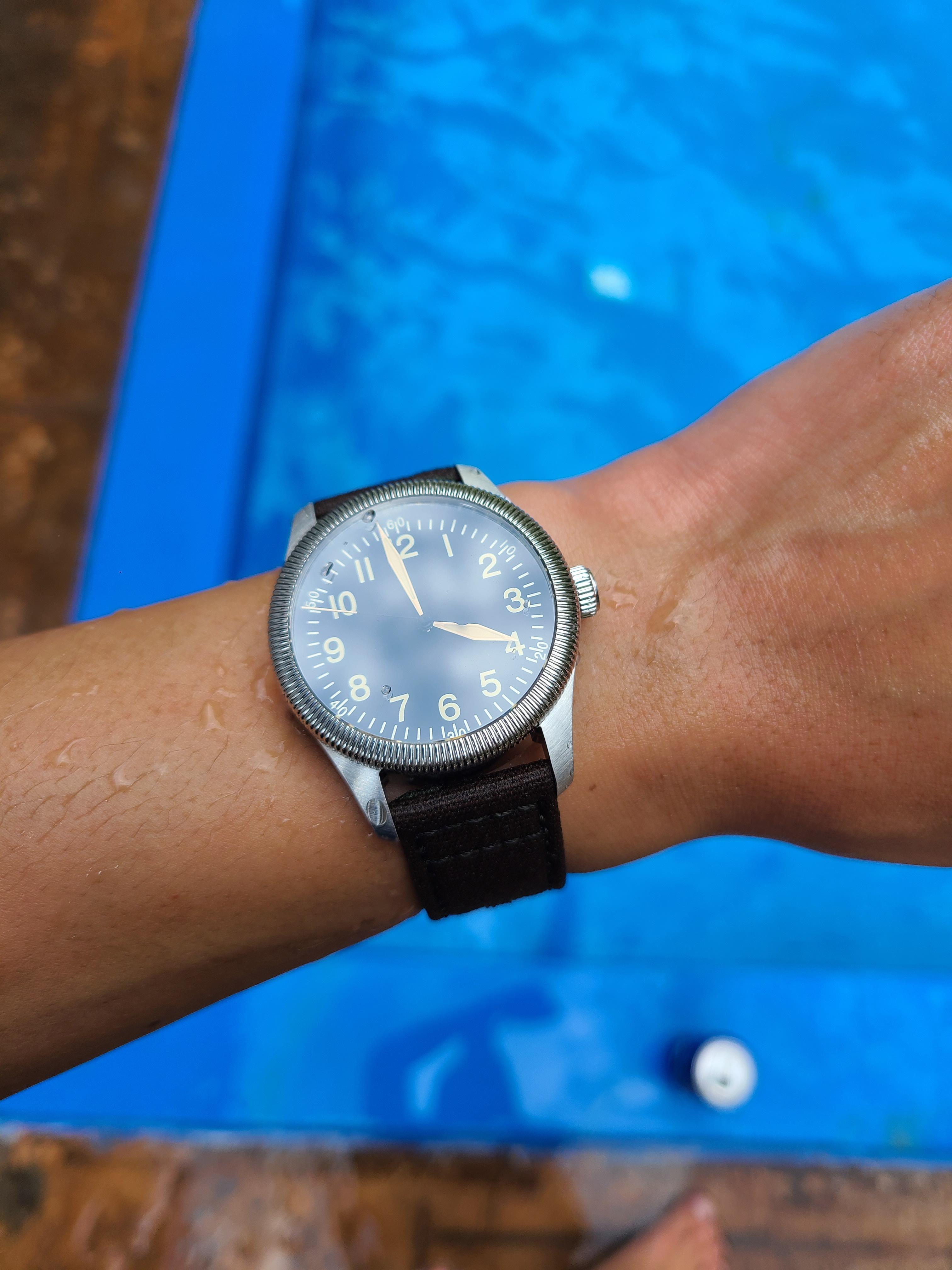 탄도리오 시계와 물놀이를 함께했습니다. 이 시계는 자칭 200m 방수라 마음껏 물에 담그며 사용하는 중입니다. 체결한 밴드도 캔버스 소재라서 젖어도 잘 마르는 편입니다.