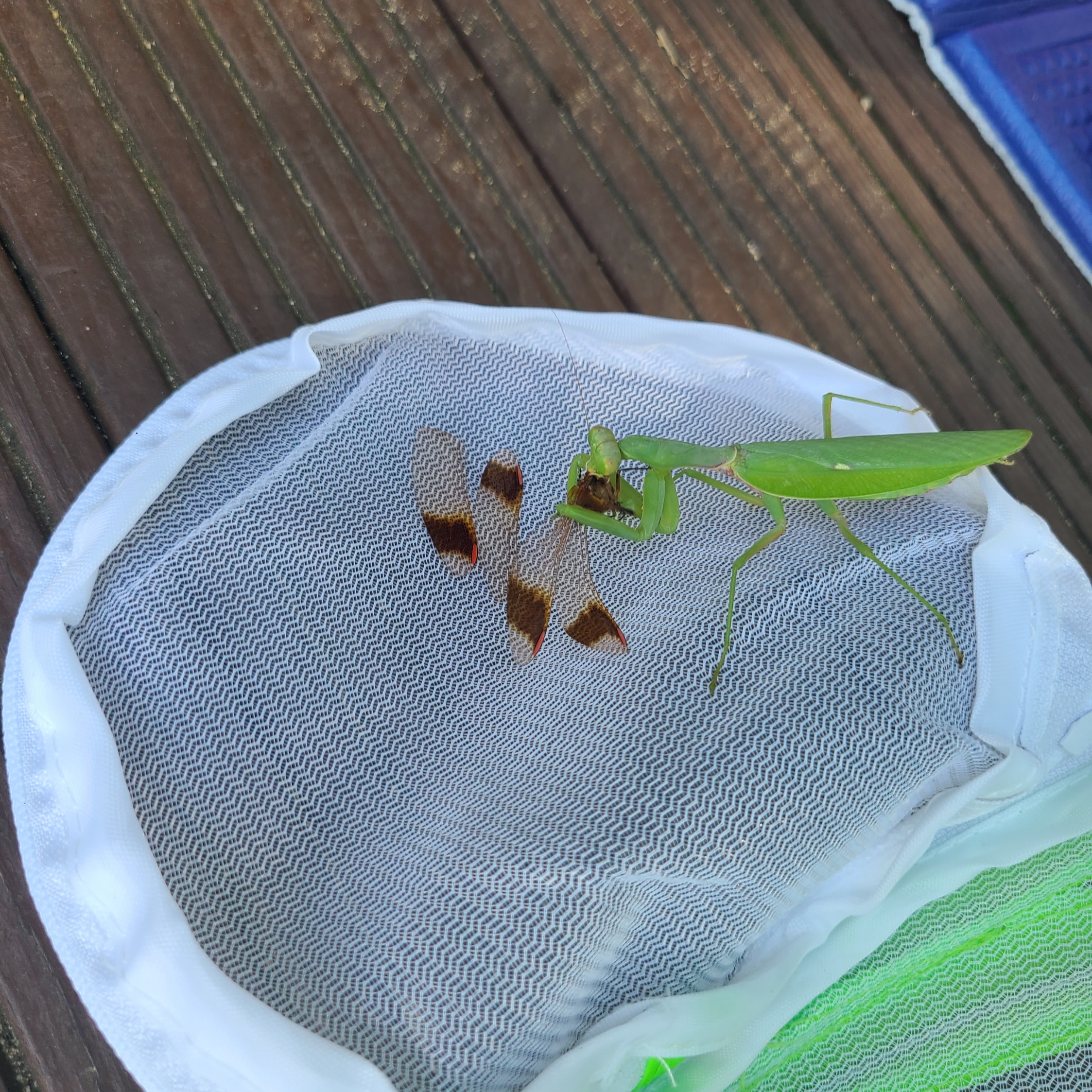 사마귀를 같이 넣었더니 잠자리를 잡아먹어버렸습니다. 포식자군요...