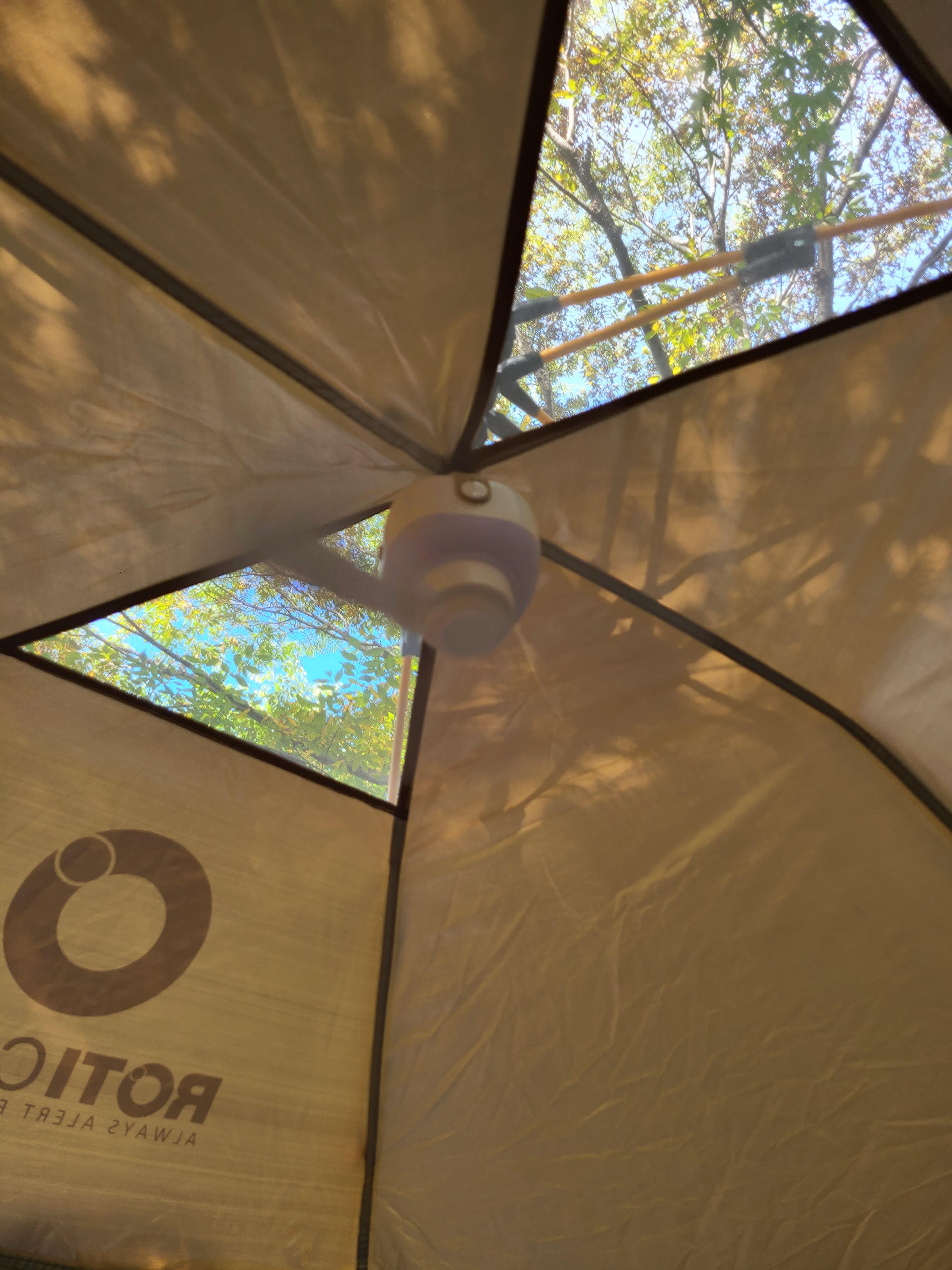 텐트 천장에도 선풍기를 하나 더 달아놨습니다. 가만히 바람을 쐬고 있으면 시원하다고 느껴지는 정도는 됐습니다. 이 선풍기에 대한 정보도 첨부합니다.