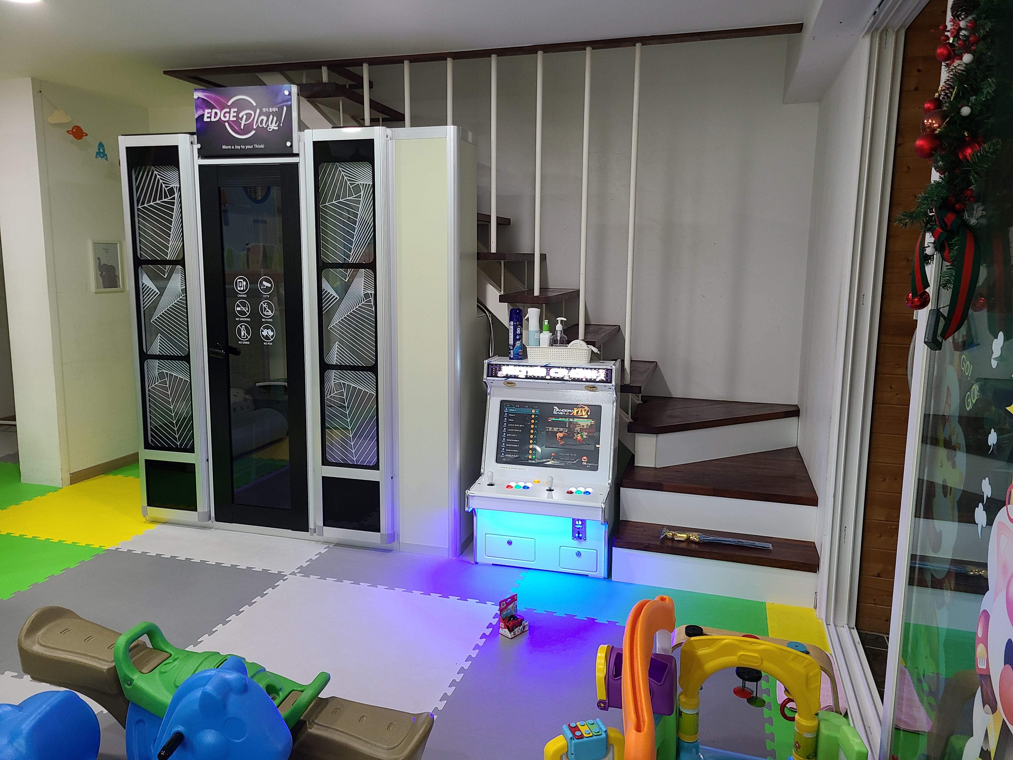 짐을 내려놓고 화장실 앞에 서서 거실 사진을 하나 찍어봤습니다. 작은 놀이공간이 있고, 우측에 코인노래방이 마련되어 있습니다. 아이가 만4세인데, 놀이공간은 시시했나봅니다.