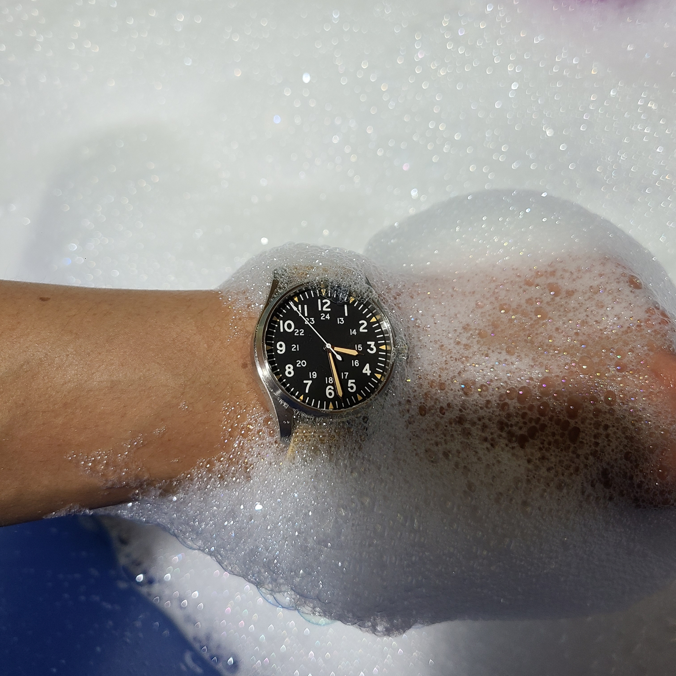 오늘도 물놀이를 함께한 탄도리오(Tandorio)의 카키필드 오마주, 오토매틱 모델입니다. NH35 무브먼트(농협 무브)에 200m 방수까지 갖춰 든든하고, 가격은 5-6만원대로 막 쓰기에도 아깝지 않습니다. 제품 링크는 아래 첨부해두겠습니다.