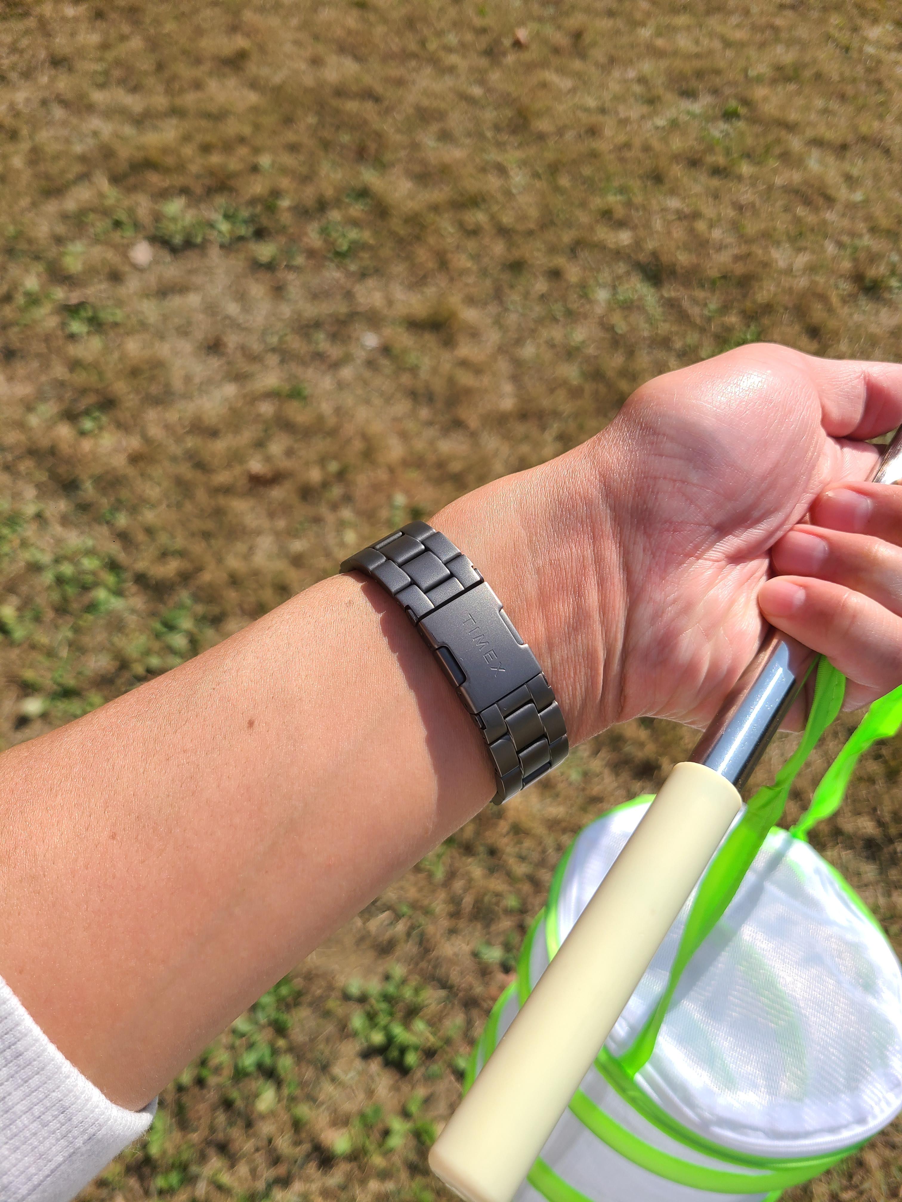 캠핑을 갈땐 탐험가의 시계인 타이맥스(Timex) 익스페디션 노스(Expedition North)를 착용해야겠죠. 전날 시계를 꺼내 맞춰놓을때부터 벌써 설렙니다. 탐험가가 된 저는 오늘 메뚜기를 한 마리 잡았습니다!
