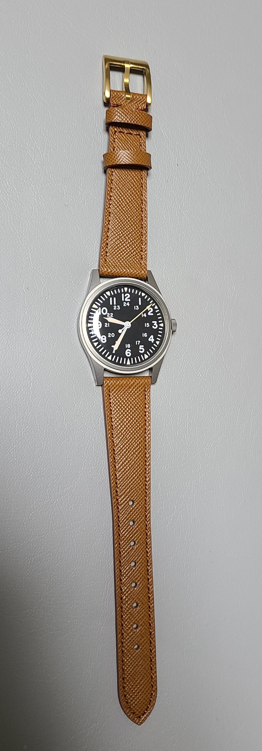 진짜 사피아노 스트랩을 사용해본적이 없어서, 이 스트랩이 잘 따라한건지는 모르겠습니다. 특유의 패턴과 색감이 캐주얼함을, 테이퍼링되는 스트랩의 모양새가 드레시함을 보여주는 것 같습니다.