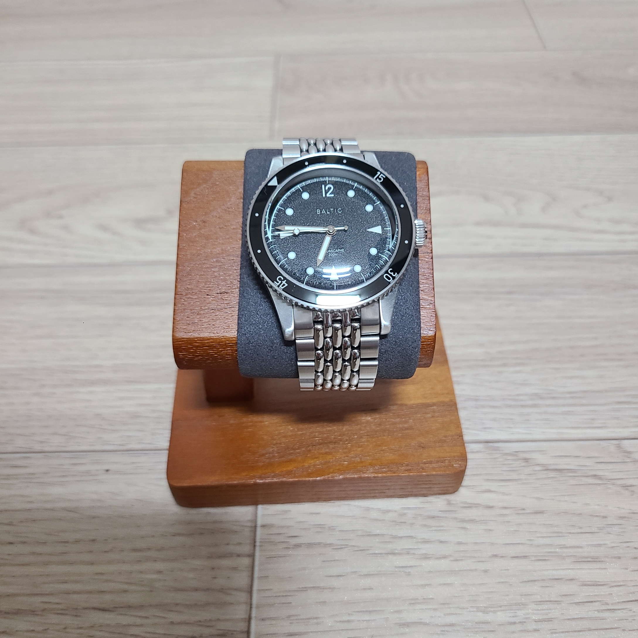 그래도 시계를 한 번 얹어봤습니다. 발틱(BALTIC)의 아쿠아스카프(Aquascaphe)를 꺼내왔는데, 케이스와 스트랩의 일부가 함께 촬영되니 보기좋은 것 같습니다.
