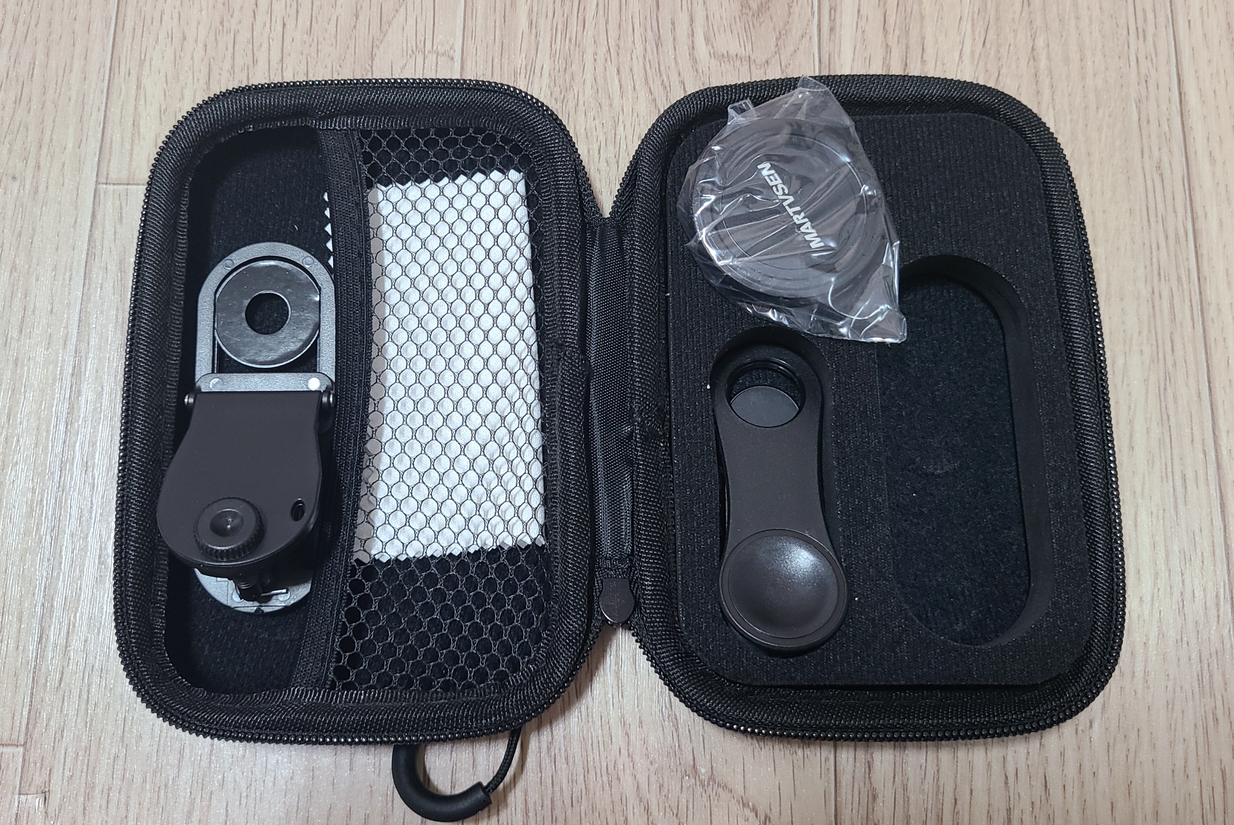 나사로 고정할 수 있는 클립과 나사가 없는 더 간단한 형태의 클립의 두 가지가 들어있고, 렌즈는 비닐에 감싸져있습니다. 또 나름대로 충격으로부터 제품을 보호할 수 있도록 만들어놨습니다.