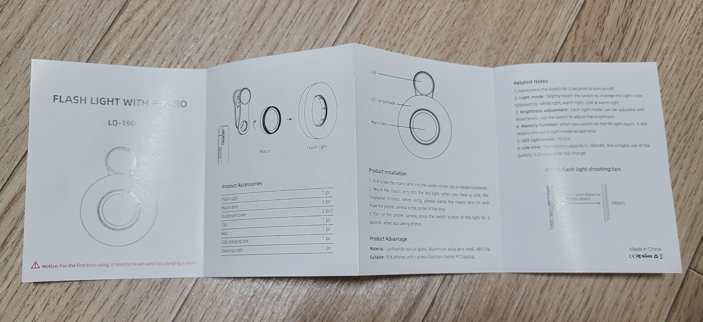 첫 제품과 마찬가지로 중국어와 영어로 된 설명서가 있습니다. 제품 판매 페이지에도 설명은 나와있으니 설명서가 굳이 필요하지는 않습니다.