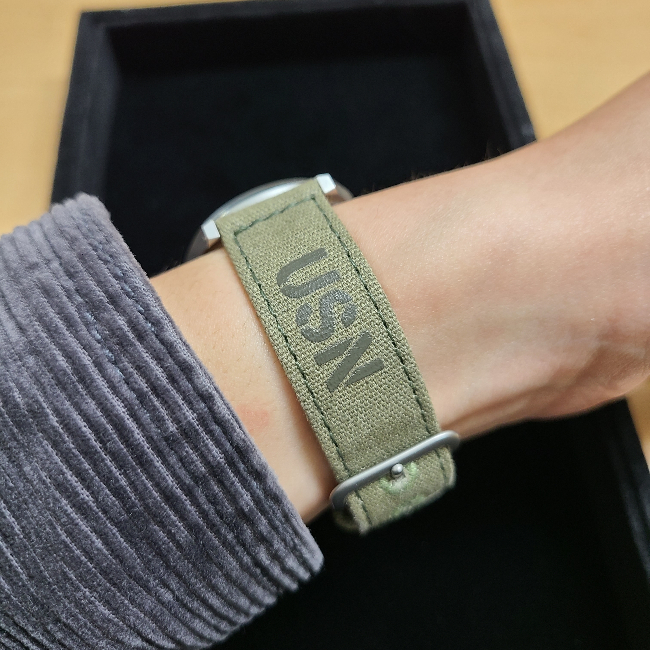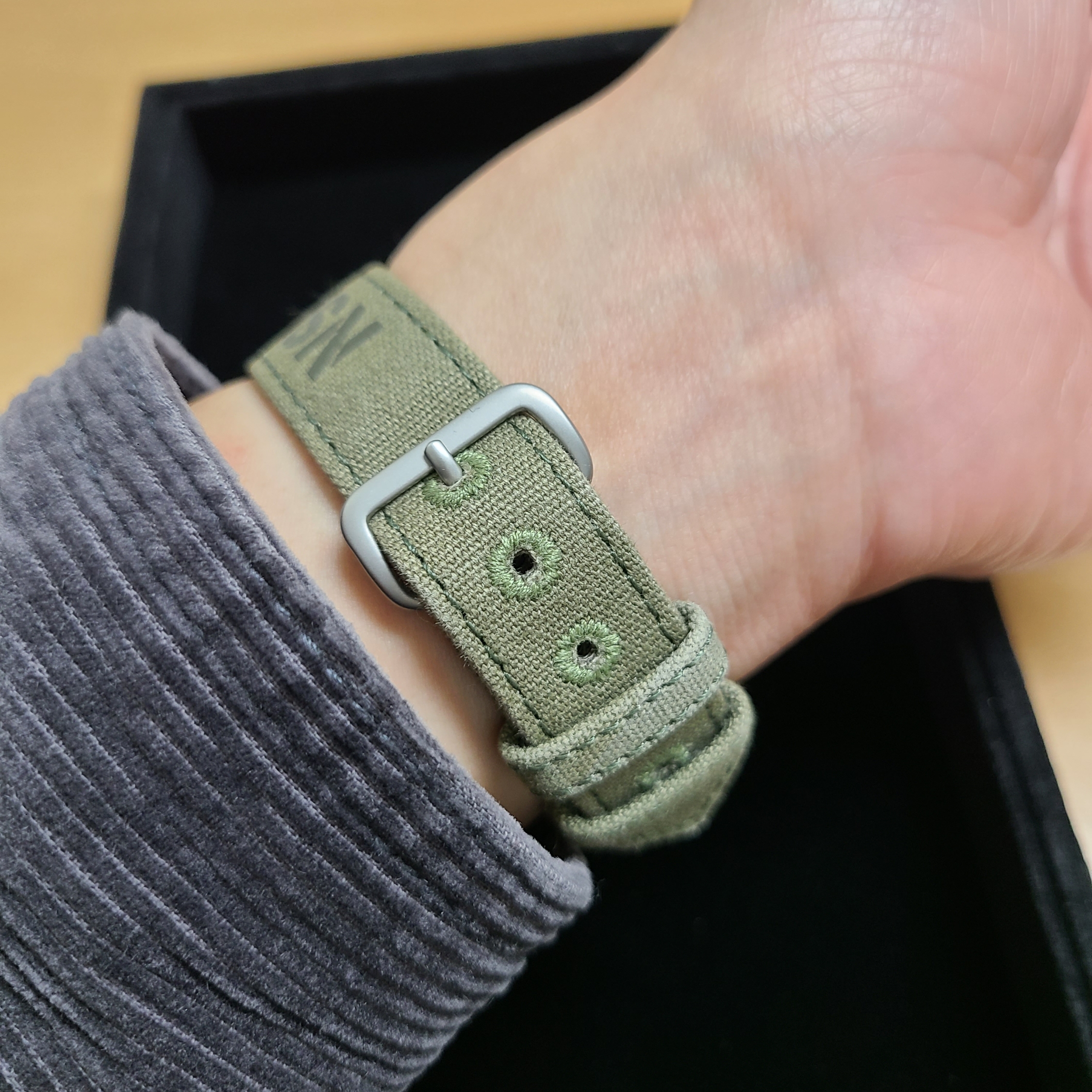 가져온 스트랩은 전에 구입해두었던 캔버스 소재의 시계줄입니다. 올리브색이라 RA03같은 밀리터리워치나 툴워치에 잘 어울립니다.