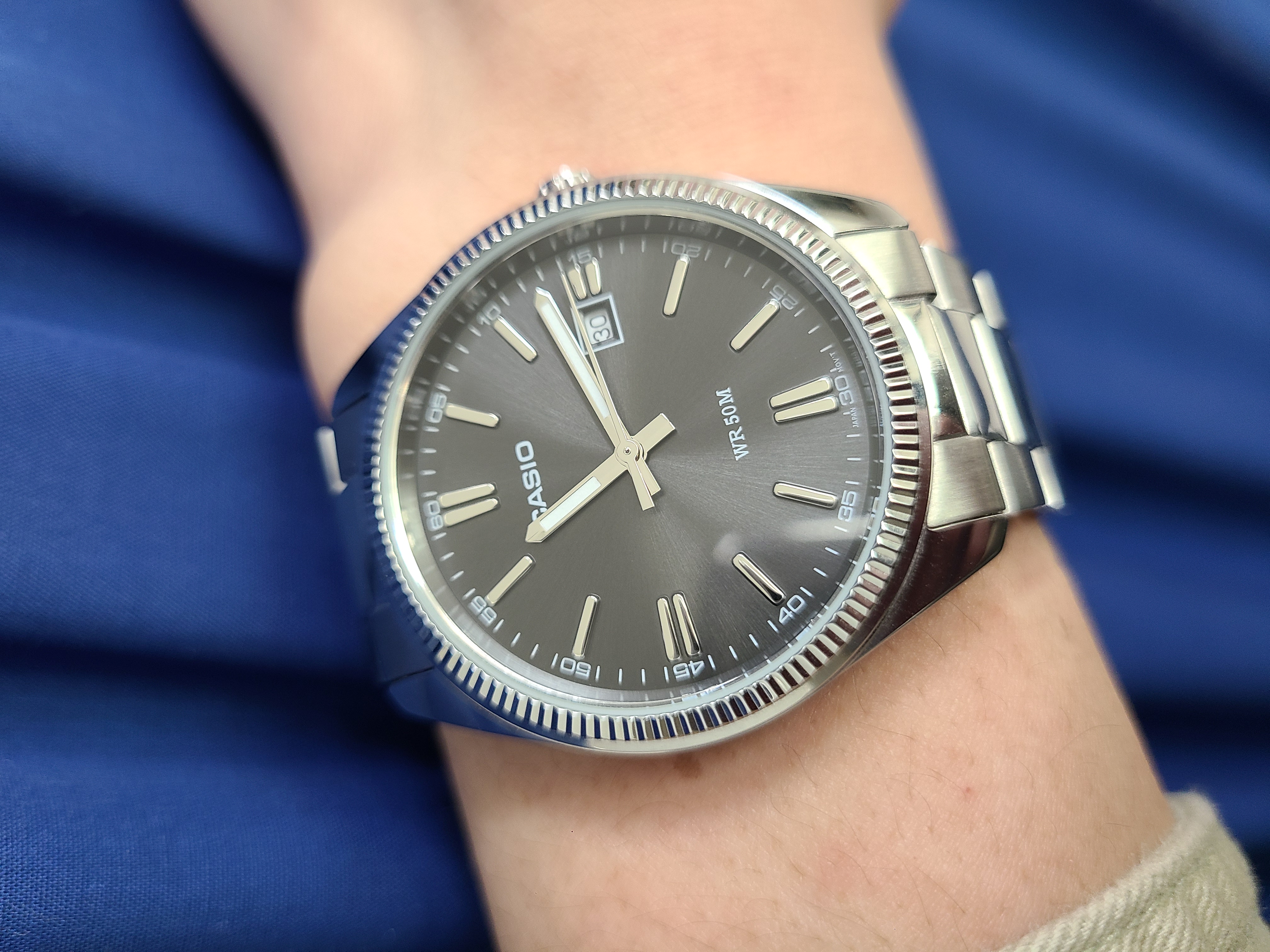 인덱스나 다이얼의 프린팅에 어긋남이 없고 잘 정렬되어 있으며, 심지어 이 시계는 초침 정렬마저 잘 맞습니다. 제가 운이 좋게 정렬이 잘 되어있는 제품을 받았는지는 모르겠지만 여러모로 카시오는 훌륭하게 손목시계를 만들어내고 있습니다.