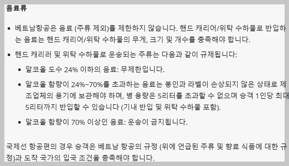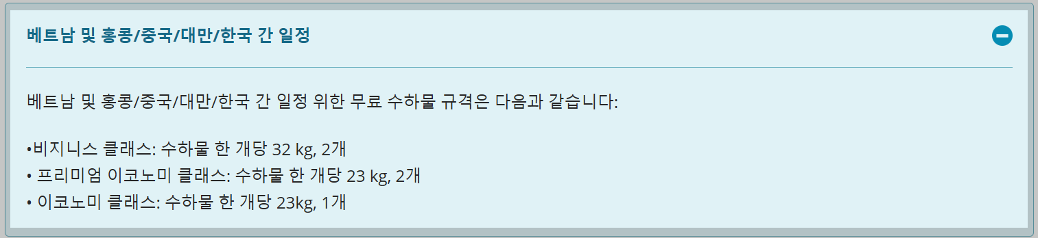 베트남 항공의 수하물 규정 중 저에게 해당하는 항목들을 하나씩 살펴보려 합니니다.