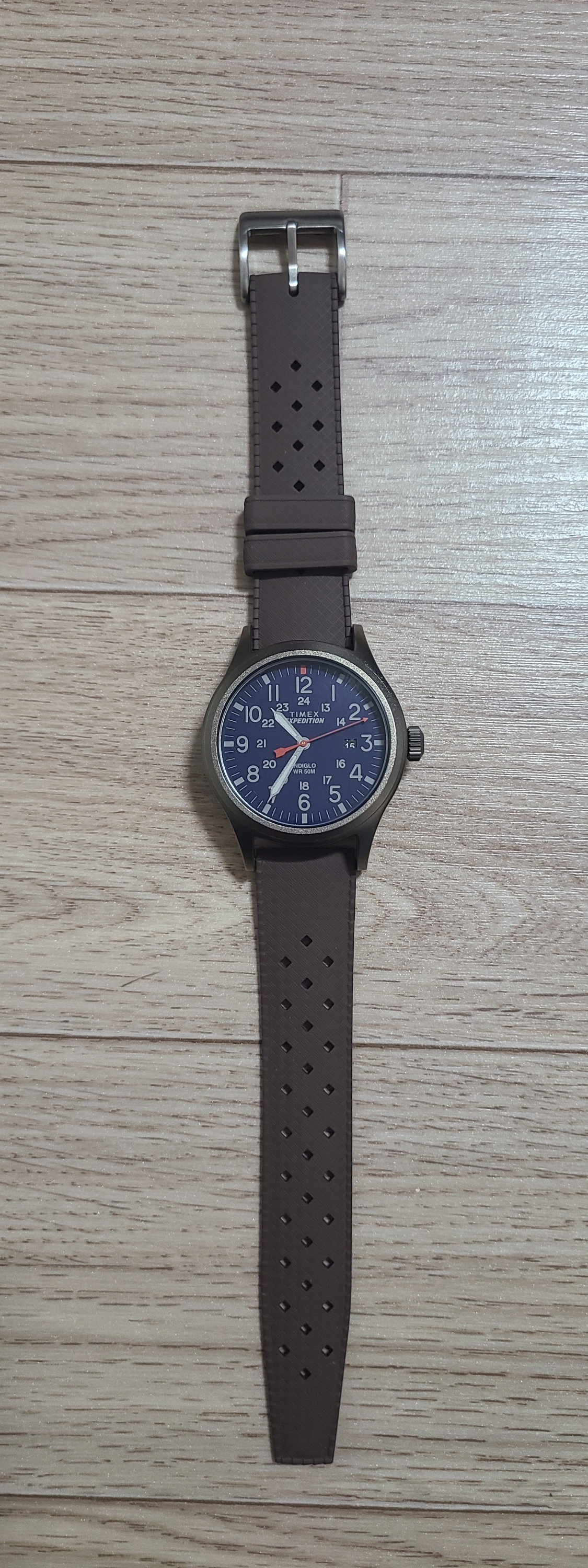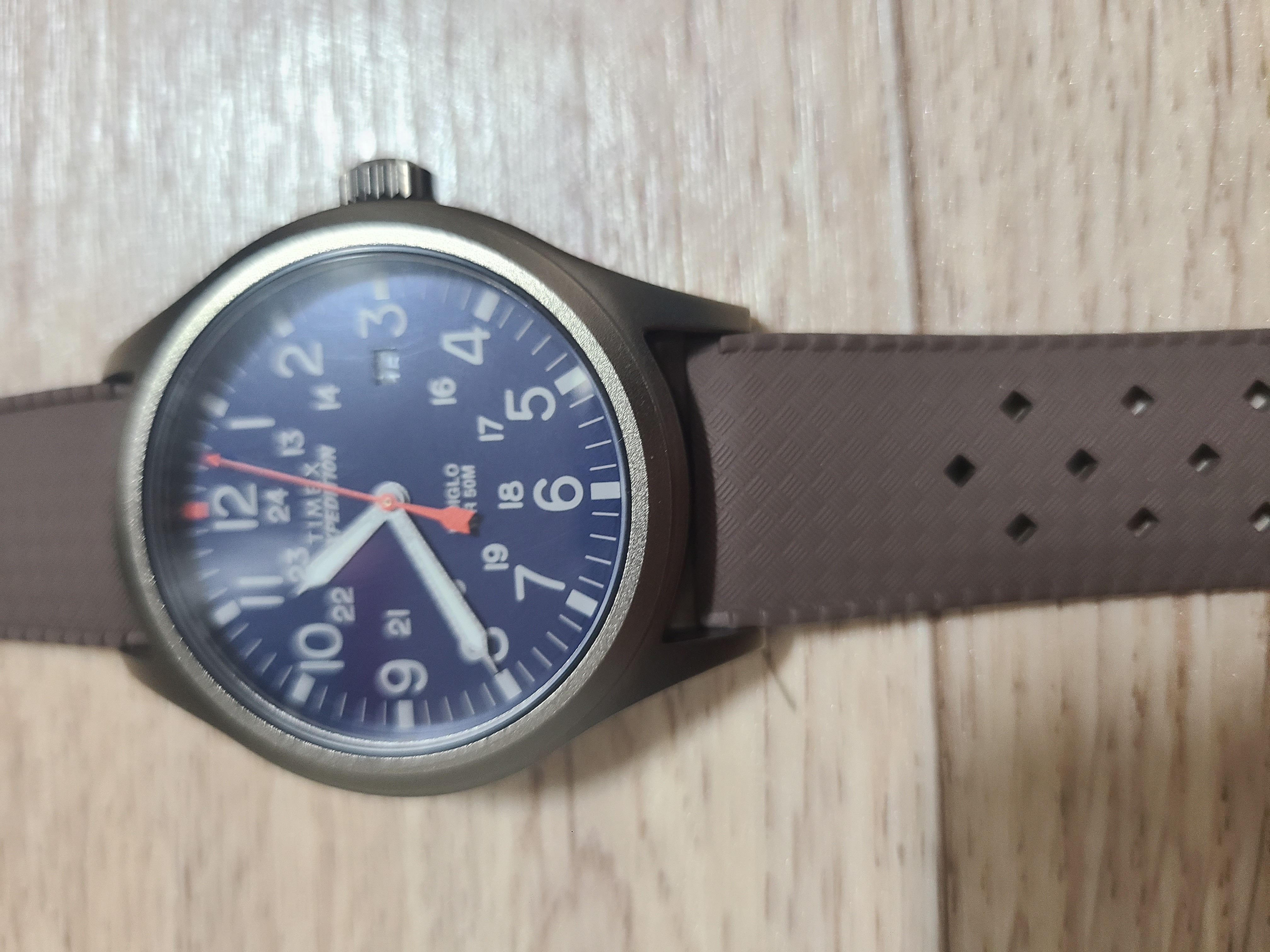 제가 가진 시계 중 유일하게 건메탈 코팅이 되어있는 타이맥스 익스페디션 노스(Timex Expedition North). 매트하고 어두운 케이스의 색감에 맞게 줄질을 하고싶어서 러버스트랩을 주문해봤습니다.http