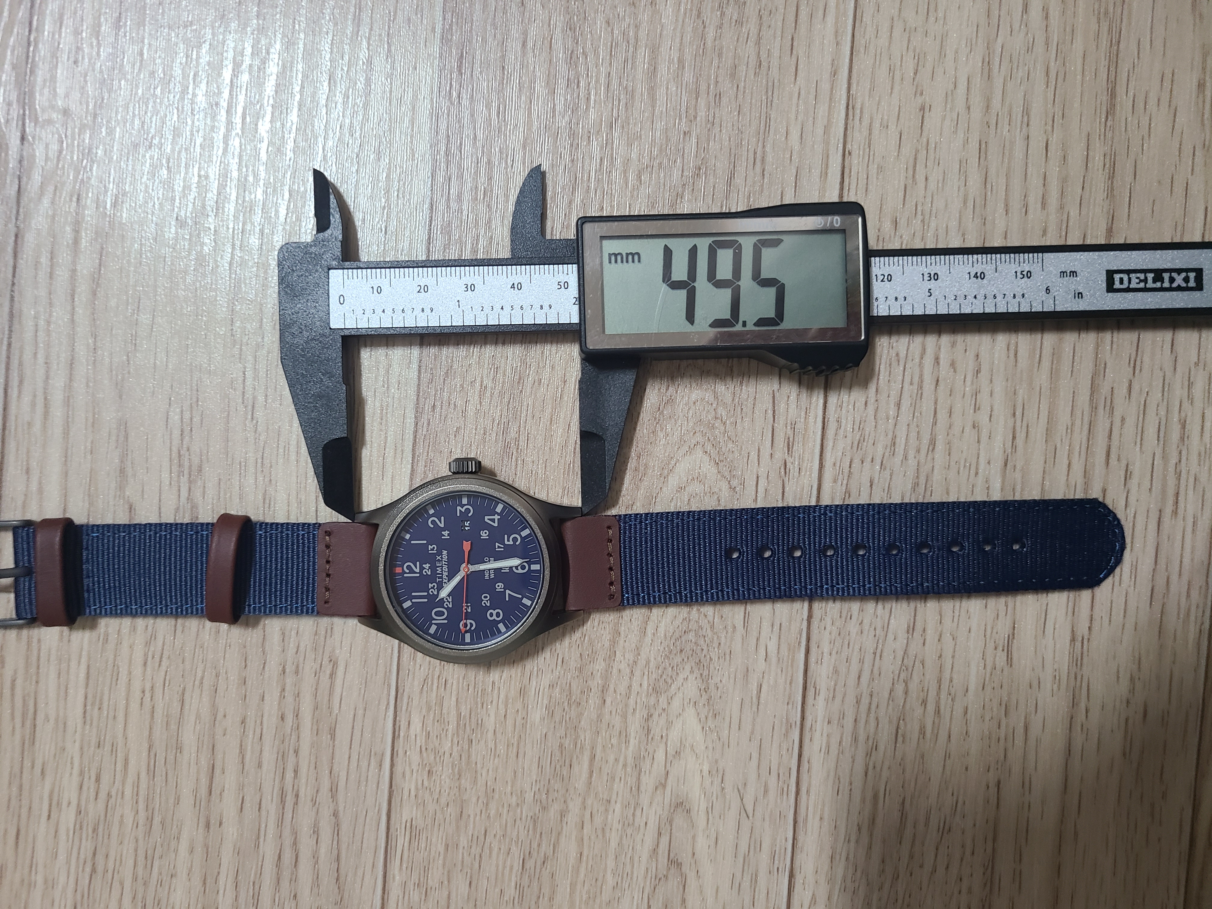 버니어캘리퍼스로 한 번 측정을 해봤습니다. 정밀한 측정이 아니라서 조금씩 오차가 있을겁니다. 그래도 이 타이맥스 익스페디션의 케이스 크기는 정말로 40mm입니다.