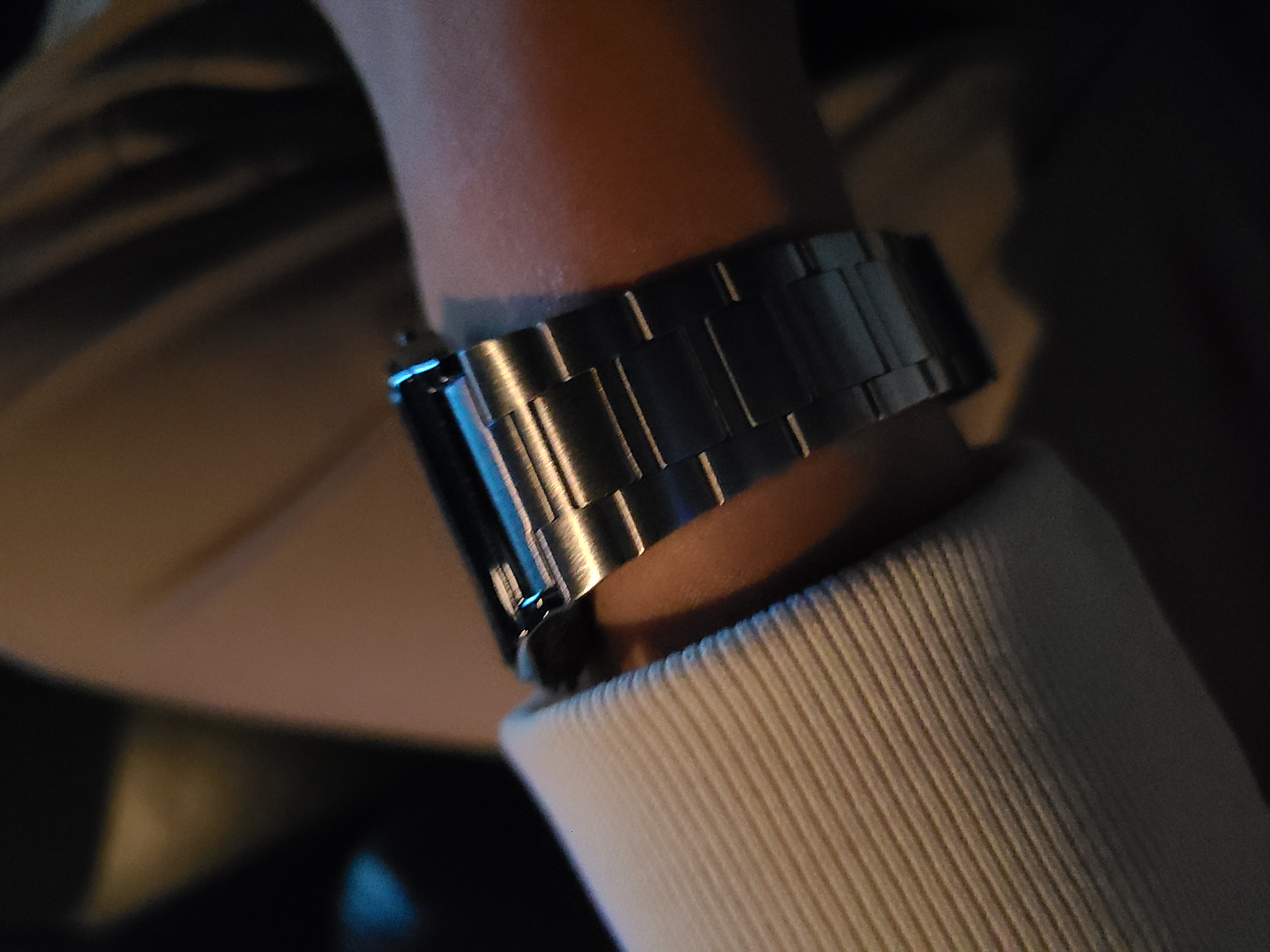 오히려 이 브레이슬릿이 참 매력적인 것 같습니다. 모두 브러시처리되어 광택도 적은데다가 일체감있는 브레이슬릿 조걱들이 적당한 곡률로 둥글게 말아가는 모습이 차분해보여서 좋습니다.