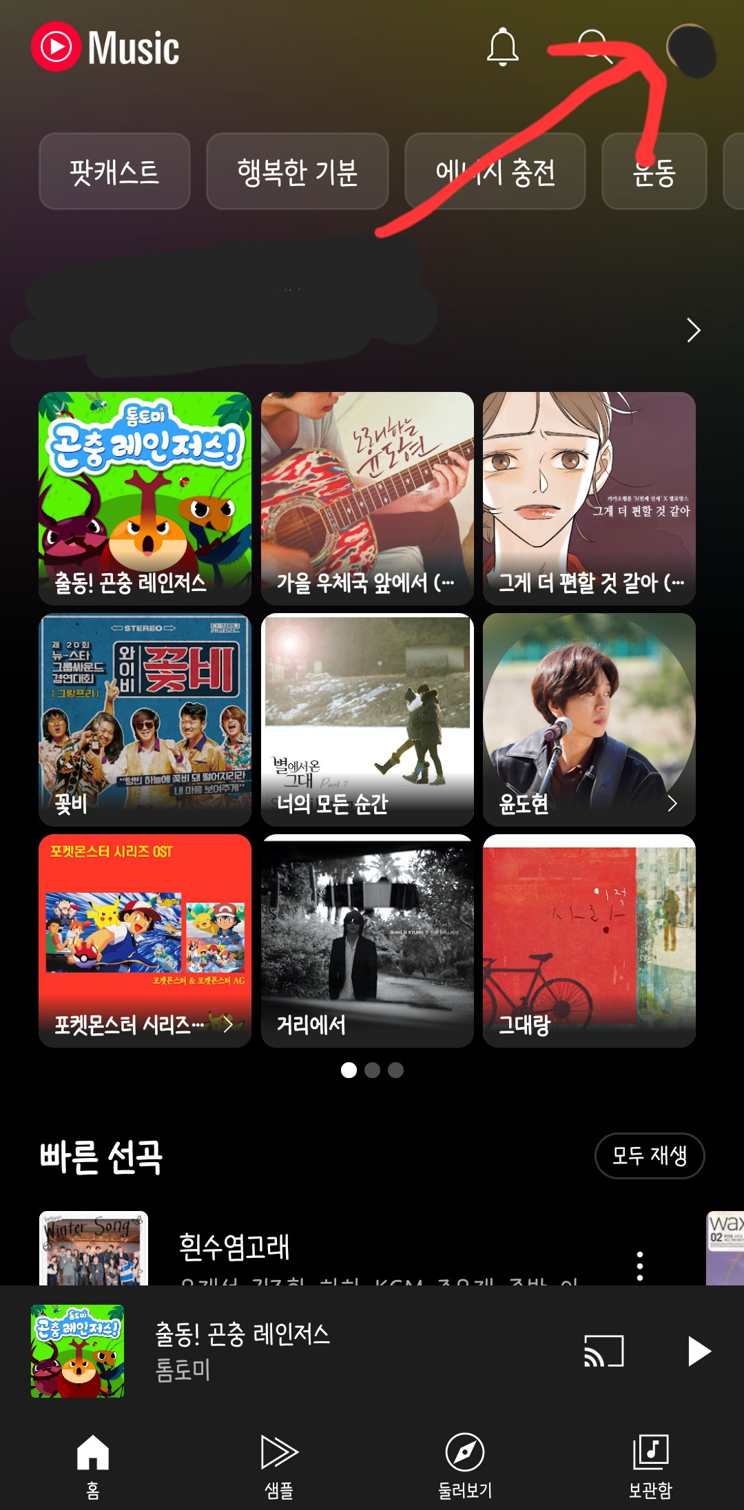 우선 유튜브 뮤직에서 프로필을 눌러 계정으로 들어가시고