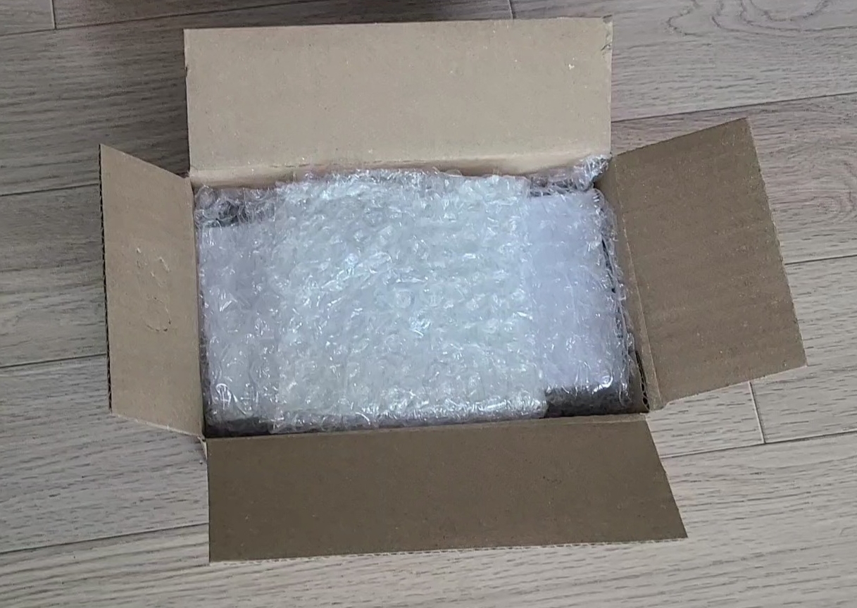 상자를 열면 일명 뽁뽁이, 에어캡으로 박스가 잘 포장되어 있습니다.