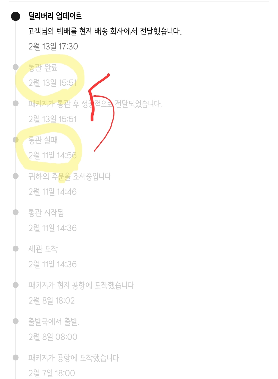 또, 관세청 통관 조회 결과 '통관 실패'에 대한 메세지는 없었으니 제 손목시계의 통관 실패는 단순 오류 메세지가 아니었을까 생각하며 기다렸습니다.