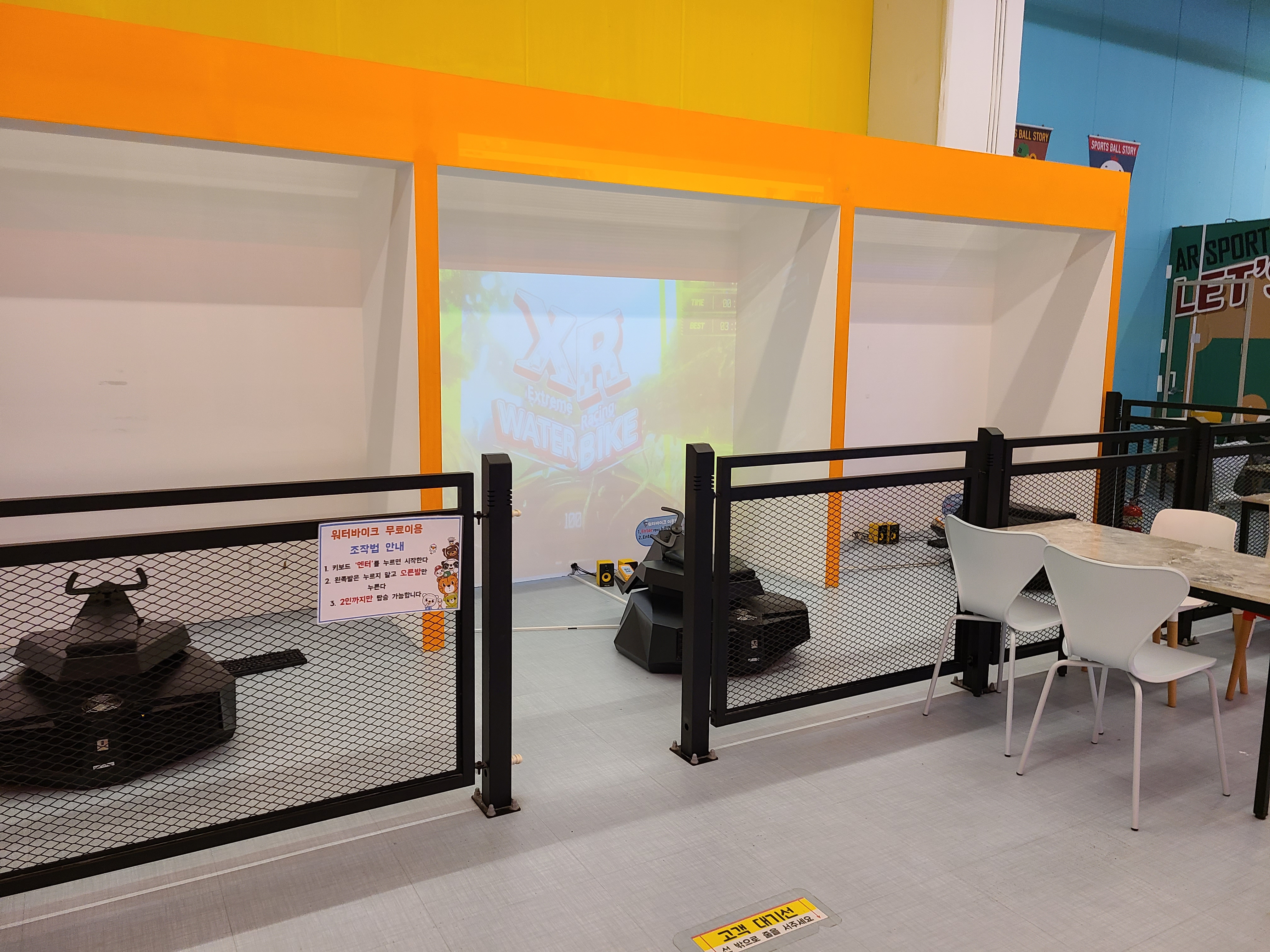 총 네 대의 모터보트 기계 중 하나만 작동하고 있습니다. 다른 키즈카페에 비해서 입장료가 비싼 편인데, 퀄리티가 떨어져서 아쉽습니다.