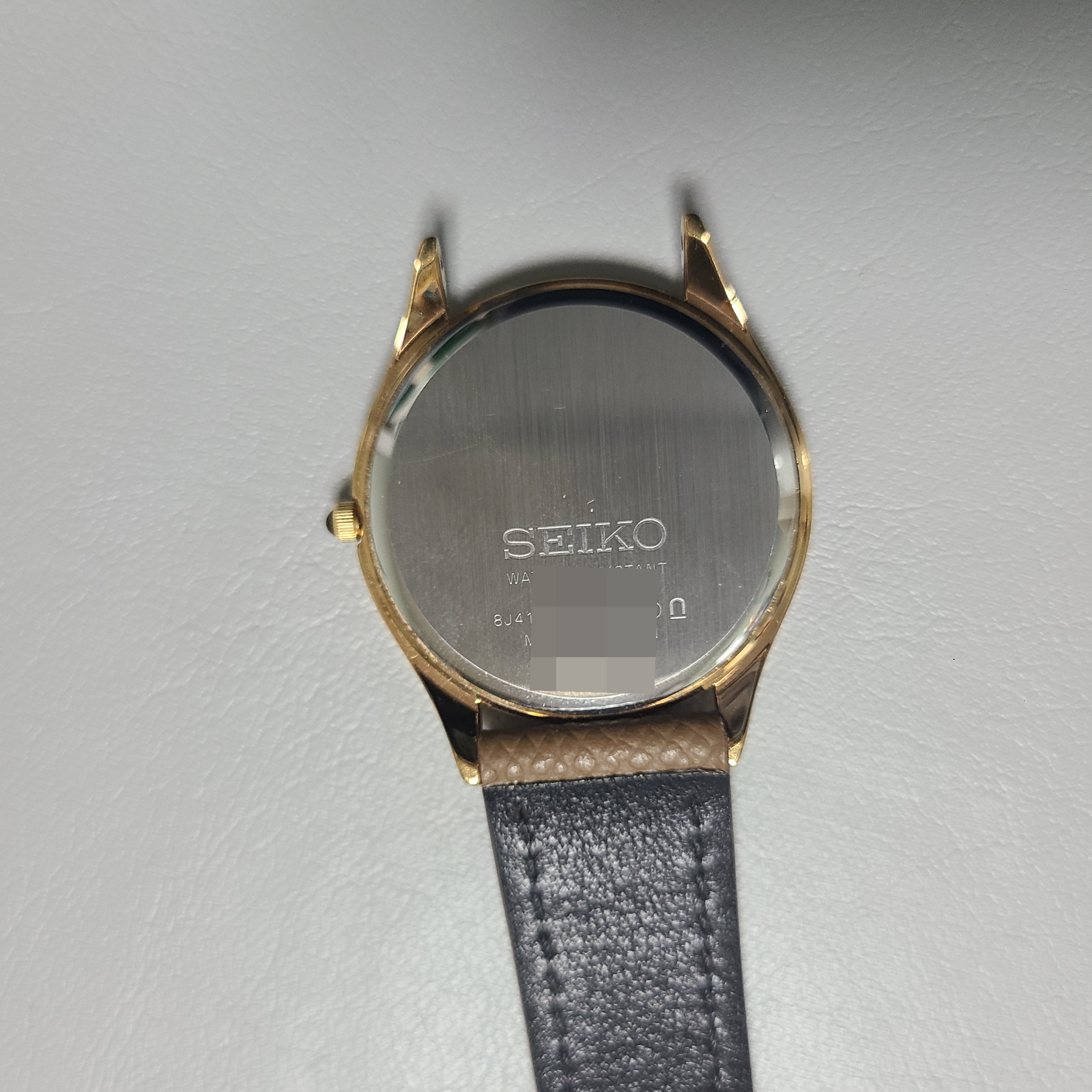 다시 시계줄을 끼워주고, 시간도 맞춰주었습니다. 세이코 돌체의 무브먼트인 8J41은 열보정 기능을 가진 고정밀 쿼츠라, 연 오차가 10초 정도입니다. 아주 정확한 편이라 과거 그랜드 세이코에도 사용되었다 합니다만, 지금은 9로 시작하는 무브먼트가 그랜드 세이코에 들어간다 합니다. 어쨌든 8J41이 훌륭한 쿼츠 무브먼트라는 사실이 변하지는 않습니다.
