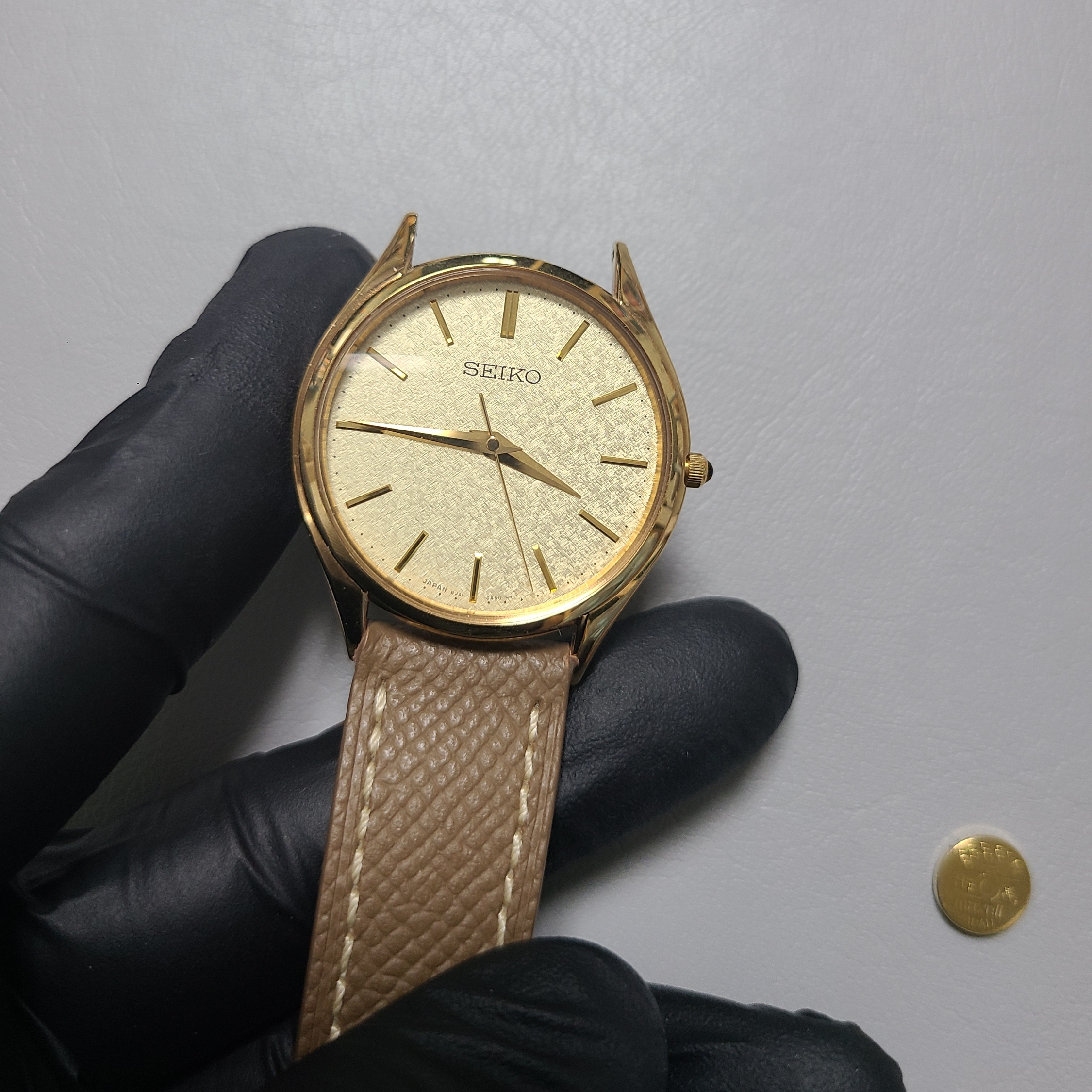 제가 가지고 있는 금장 손목시계, 드레스워치인 세이코 돌체(SACM150)는 이베이에서 구입했었는데, 최근 꺼내보니 시계가 멈춰있었습니다. 배터리를 교체할 때가 된 것이지요.