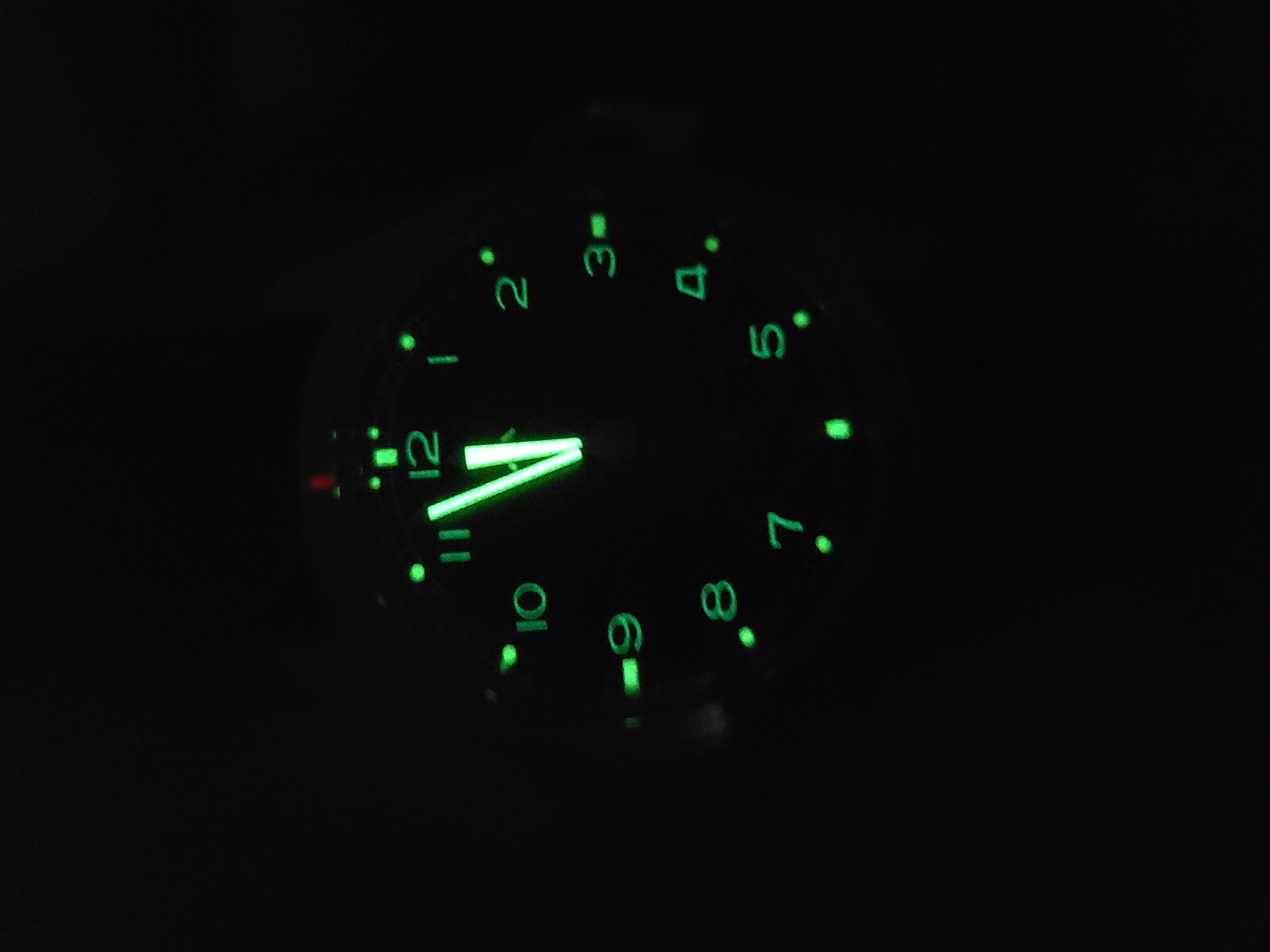 잠들기 전 마지막으로 메르커 세이젠 더티더즌의 야광을 촬영해봤습니다. 아라빅 인덱스의 숫자들이 얇아서인지 선명하지는 않지만, 야광이 제대로 발려있다는 사실만으로도 만족할 수 있을만한 손목시계입니다.