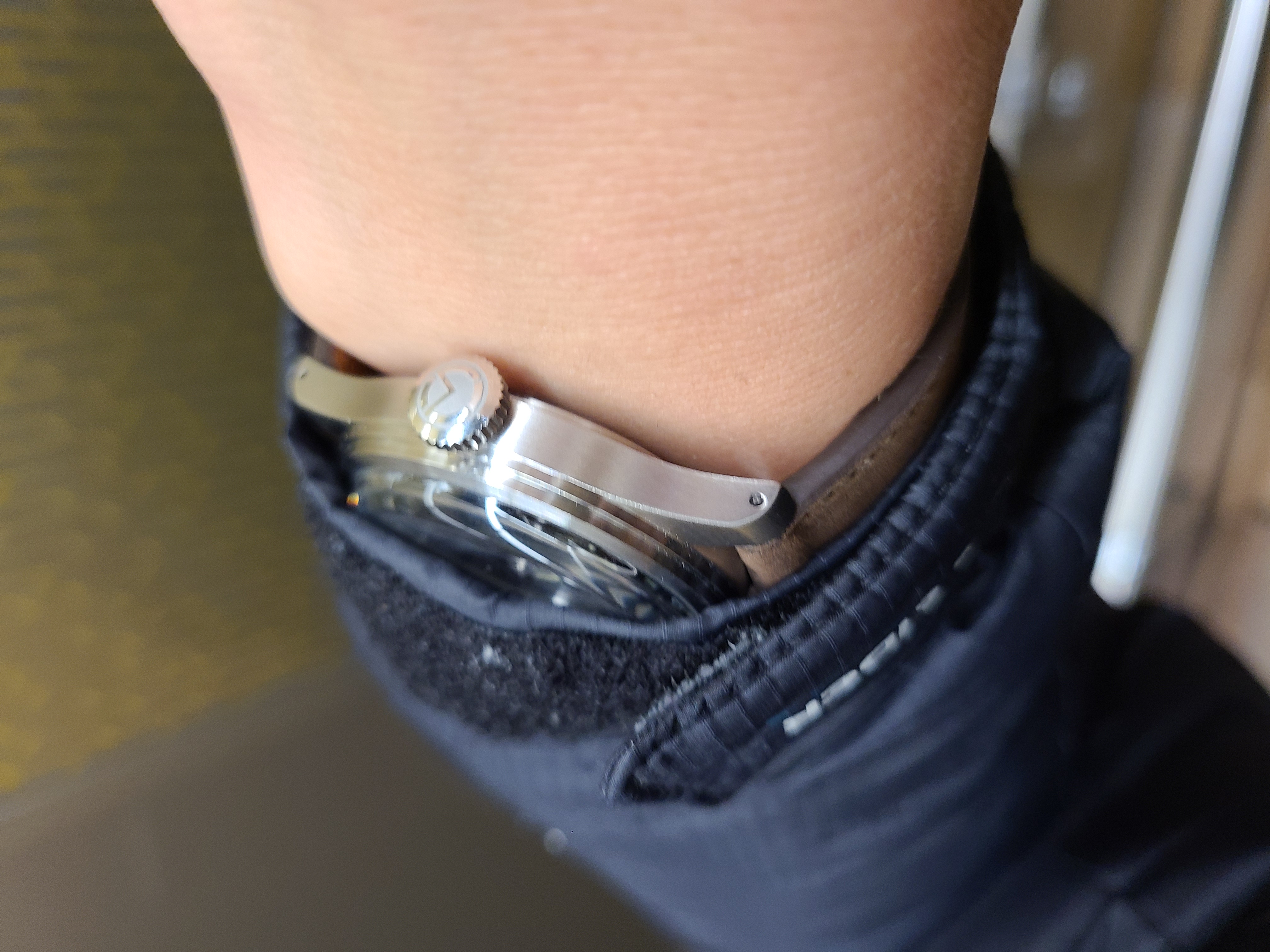 집앞에 쓰레기 버리러 가면서 메르커 세이젠 더티더즌과 플루코 마운틴베어 스트랩의 조합을 느껴봤습니다. 역시 얇은 케이스 두께에 얇고 부드러운 가죽 시계줄을 매치하니 착용감이 정말 좋습니다. 패딩 소매가 조이는 편이라 두꺼운 시계는 불편해서 잘 착용하지 않는 편인데, 이 메르커 세이젠 더티더즌은 패딩 소매 안으로도 걸리적거림 없이 쉽게 드나듭니다.