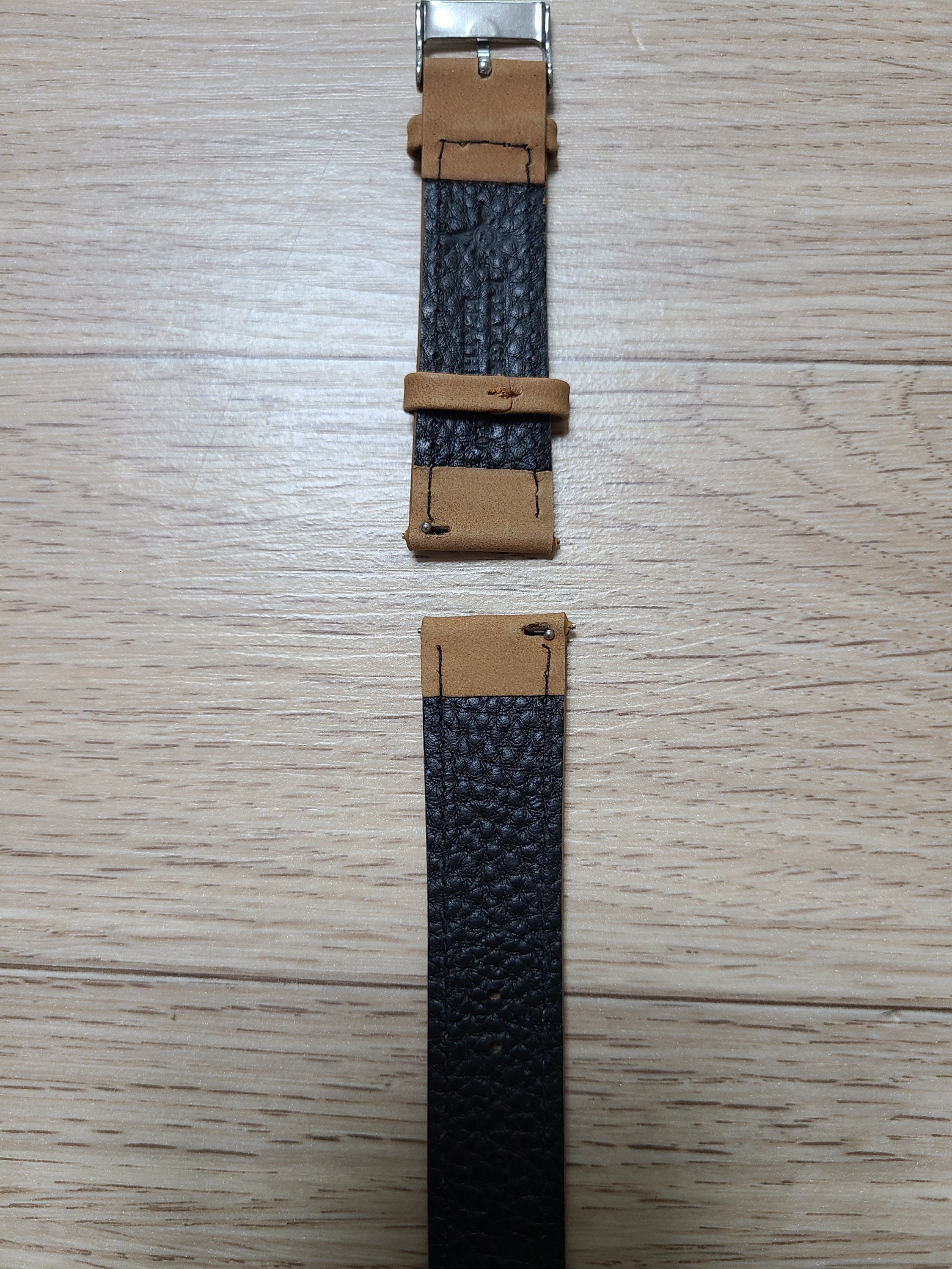 최종 결정은 후보 2번, 탠(Tan) 색입니다. 저에게 카이저스트는 악세사리의 역할이 크기 때문에 시계만 돋보이는 것보다는 적당히 시선이 분산되는 것이 더 좋은 선택이라 생각했습니다. 그래서 흰색 스티치가 박혀있는 이 시계줄을 골랐습니다.