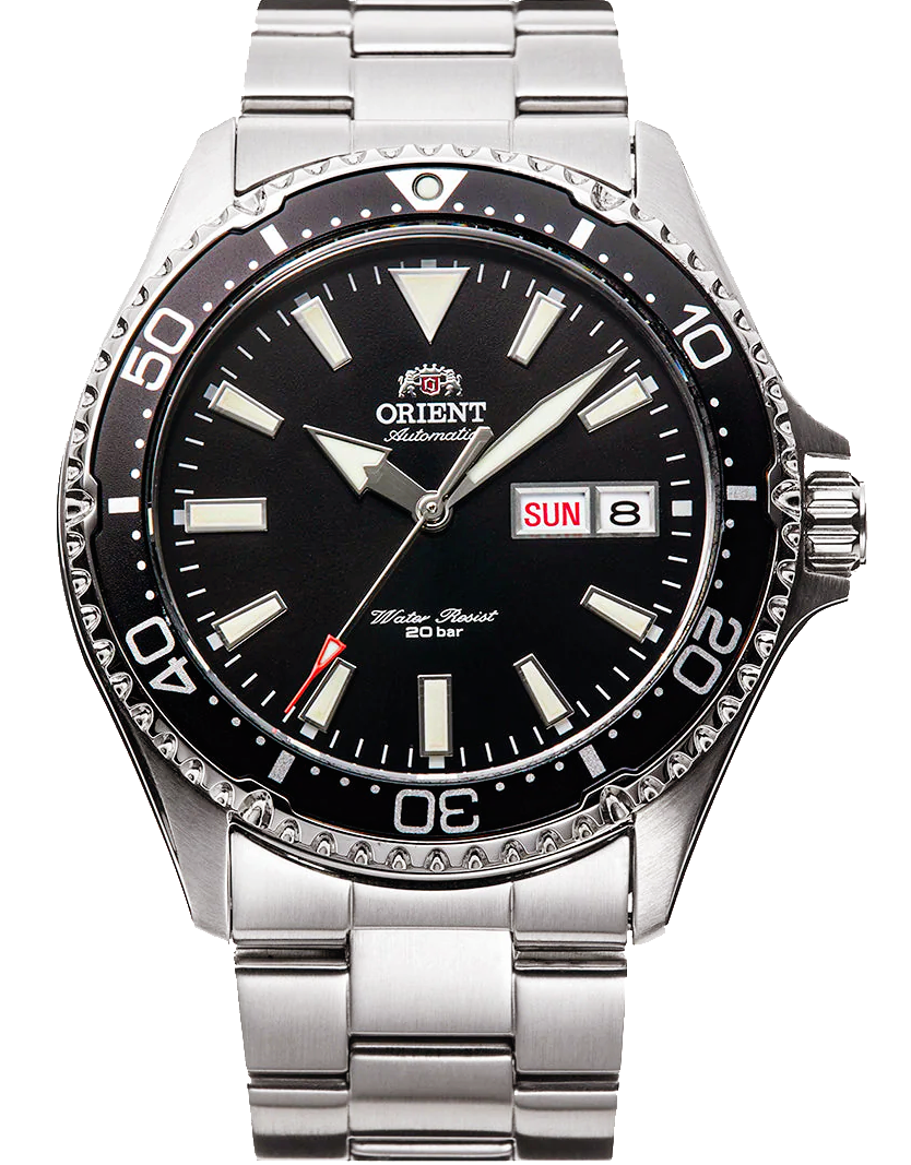 - 🦈 Orient (오리엔트) – 카마수(Kamasu) / 마코 2(Mako II): 가격 대비 뛰어난 스펙과 각진 핸즈, 인덱스 디자인이 강점