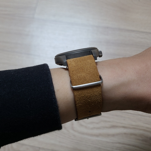 버클은 브러시 처리가 되어 있어서 가죽 표면의 거친 질감과도 잘 어울리는 디자인입니다. 가죽이 두꺼운 만큼 착용감도 어느정도는 타협을 해야하고, 케이스 아래에서 두께가 두꺼워지는 부분도 감안해야 합니다. 분명 잘 어울리는 시계가 있을 것 같은데, 제가 이 스트랩을 애용하게 될지는 두고봐야 할 것 같습니다.
