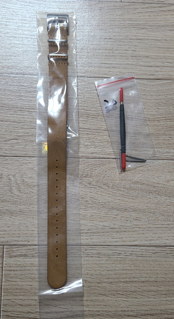 내용물은 스트랩과 스프링바 3개, 그리고 시계줄 교체 도구가 전부입니다. 늘 보던 조합이지요.