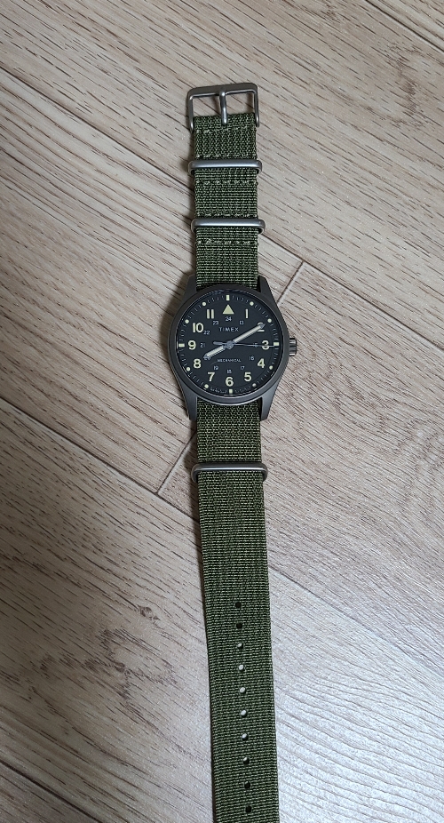 결론적으로 나일론 소재의 나토 스트랩이 잘 어울리기는 하는데, 올리브색이 연한 노란색의 인덱스와 잘 어울리는 것 같지는 않습니다. 색감이 마음에 들지 않으니 또 알리를 켜게 되는군요...ㅋㅋㅋ