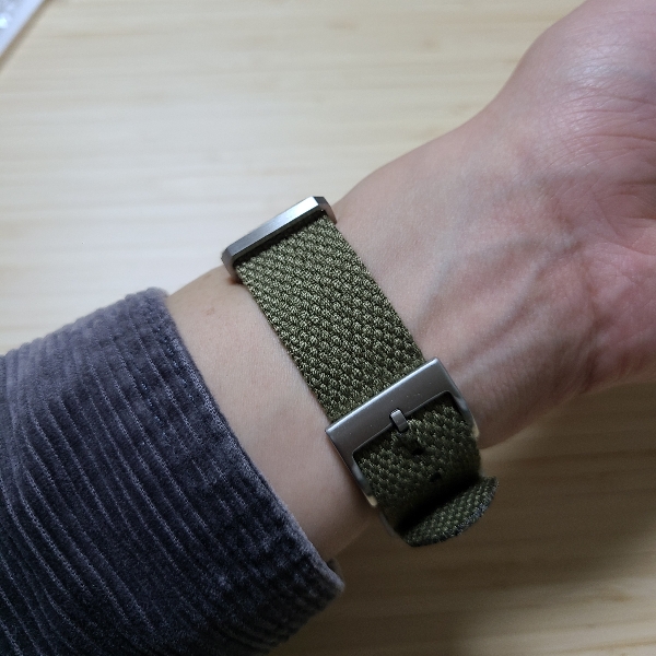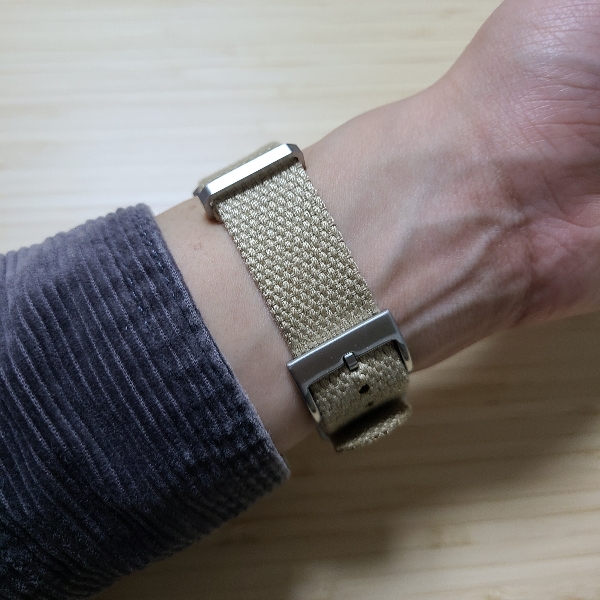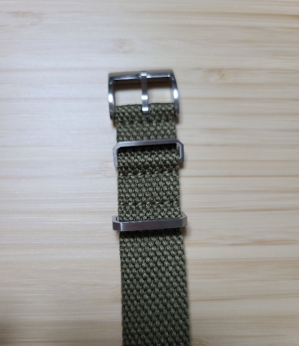 시계줄이 면 소재이니 나일론 나토 스트랩처럼 뻣뻣하지 않아서, 버클에 끼워넣을 때 조금 번거롭기는 했습니다. 흐물거리는 줄을 버클에 잘 맞춰 넣어야하니 말입니다. 그래도 촉감이 부드럽고 착용감이 좋아서 나일론 소재보다 훨씬 좋다고 느꼈습니다.