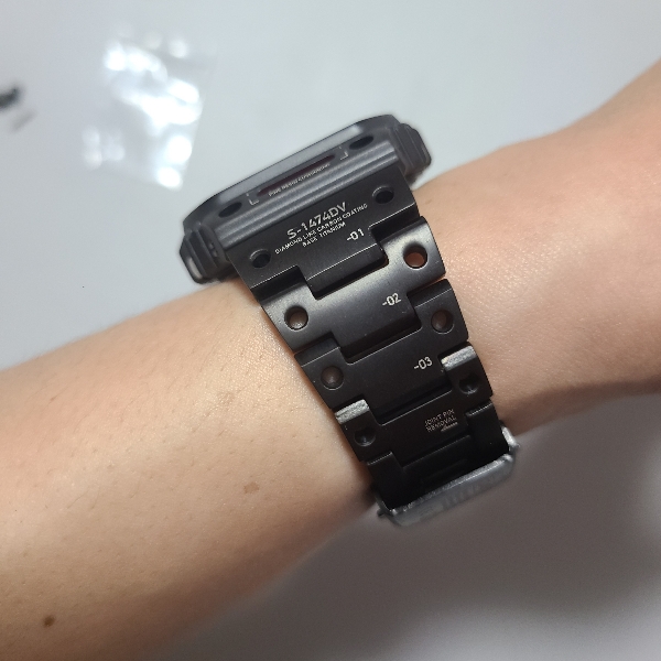 우여곡절 끝에 결국 완성했습니다. 티타늄 모딩 키트를 장착한 지샥 빨테, 레진보다는 당연히 묵직해졌지만 스테인리스 소재의 손목시계들 보다는 확실히 가볍다 느껴집니다.