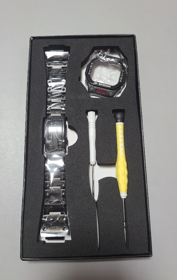그리고 드디어, 모딩 키트가 모습을 드러냅니다. 다른 시계줄 교체 도구와 달리 긴 드라이버를 두개나 넣어줬는데, 나사를 풀어야 하기 때문인 것으로 보입니다.