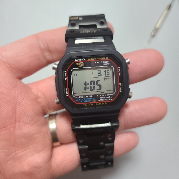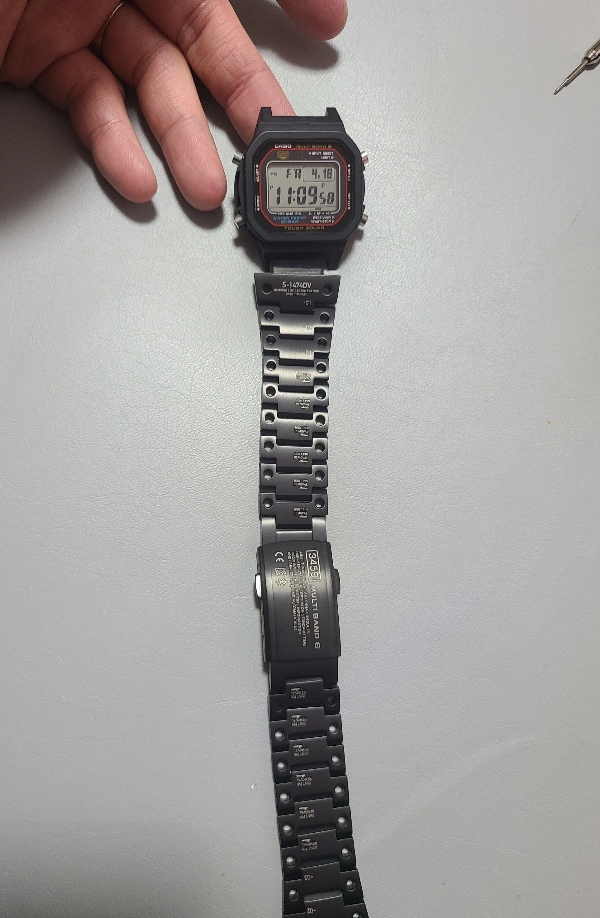 우선 시계줄을 다 탈거해냈습니다. 알맹이의 러그 모습이 F-91W와 비슷한 것 같군요.