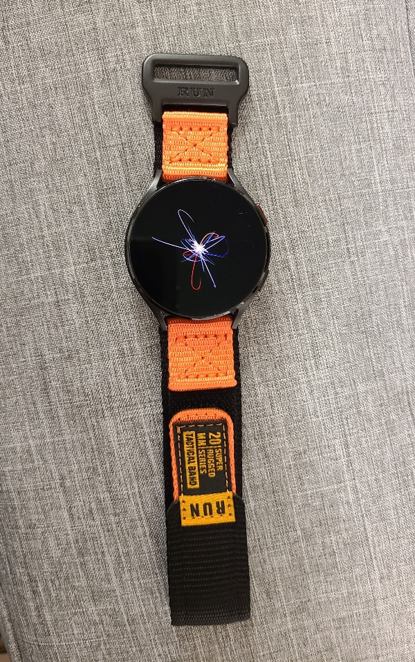 세 번째, 주황색으로 군데군데 포인트가 들어간 나일론 소재의 벨크로 시계줄입니다. 1, 2번과는 디자인이 조금 다른데 실물을 보니 제가 주문한 스트랩 셋 중에서는 이게 제일 마음에 드는군요.
