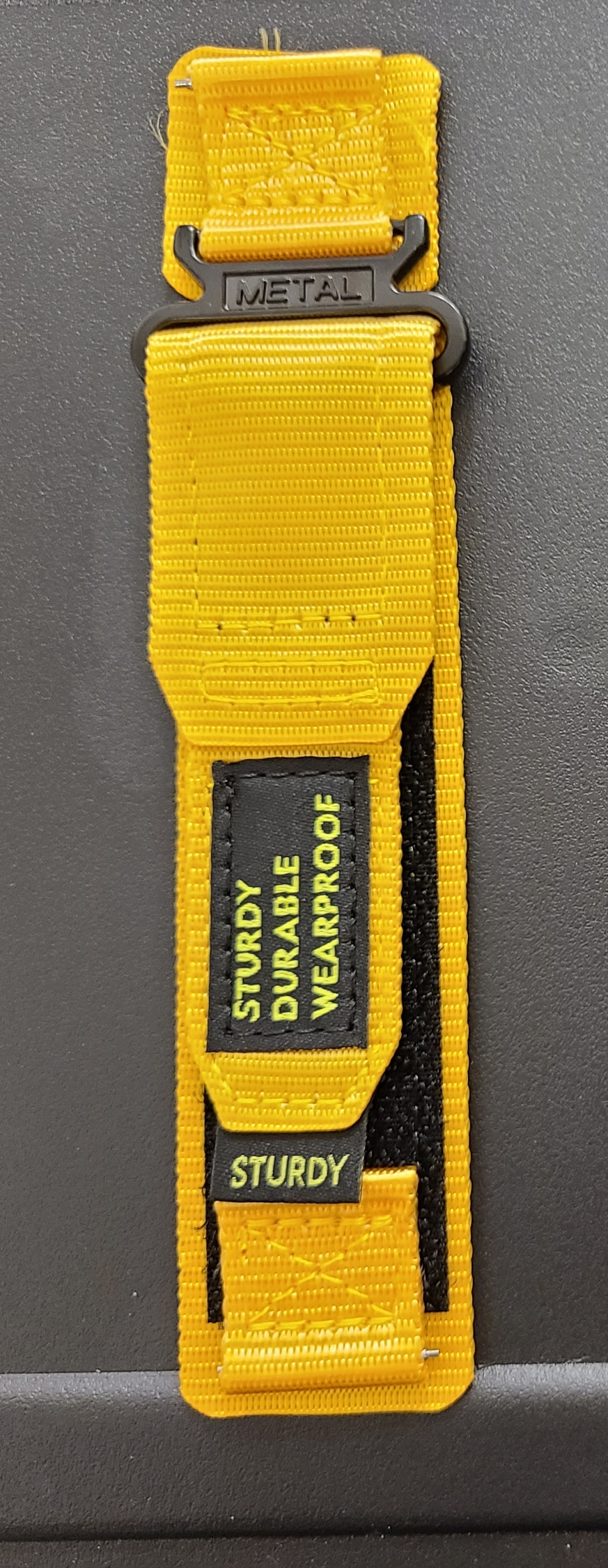 먼저, 노란색의 벨크로 나일론 스트랩입니다. 사진에서 보면 벨크로가 검은색이라 전체적으로 다 노란색이 아니라 노란색과 검은색의 조합인 것처럼 보이는 시계줄이라 한 번 구입해봤습니다. 벨크로까지 노란색이었다면 아마 구입하지 않았을 것 같습니다. 제가 받은 제품은 마감이 그다지 좋지 않아서 실밥이 좀 보이는데, 가격이 워낙 저렴하니 납득이 됩니다. 라이터로 살짝 정리해서 쓰면 될 것 같습니다.