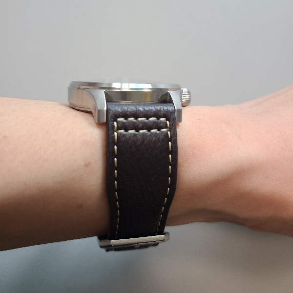 함께 체결되어 온 제치 가죽 시계줄은 아래로 내려갈수록 좁아지는 디자인이고, 유명한 파일럿 워치의 시계줄 디자인을 따라한 것 같습니다.