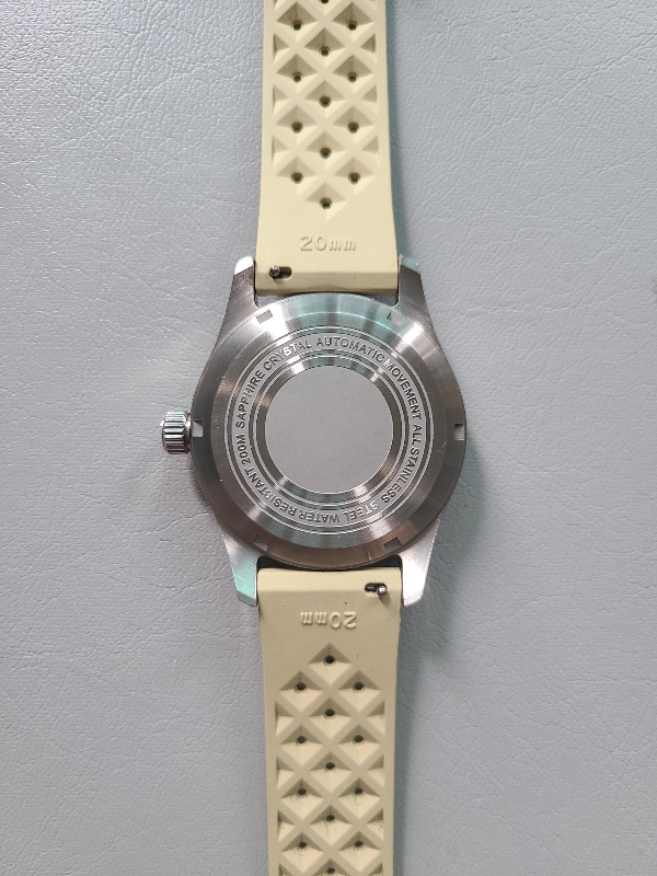 진정한 알리발 가성비 필드워치, 탄도리오 카키필드입니다. 이렇게 카키색 FKM 트로픽 러버 스트랩을 체결해서 물놀이에 아주 잘 어울리는 툴워치 혹은 다이버워치로 사용하고 있었습니다. 해당 시계줄의 정보는 아래 첨부해두겠습니다. 다양한 색을 판매하고 있어서 좋았습니다.