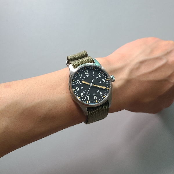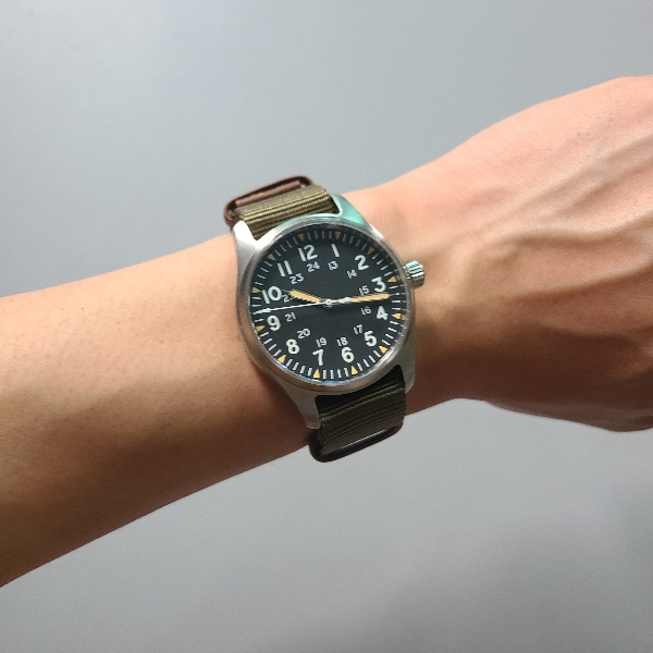 손목에서도 필드 워치의 분위기를 한껏 뿜어냅니다. 39mm의 적당한 케이스 사이즈에 20mm의 러그 너비, 아주 훌륭한 조합입니다.