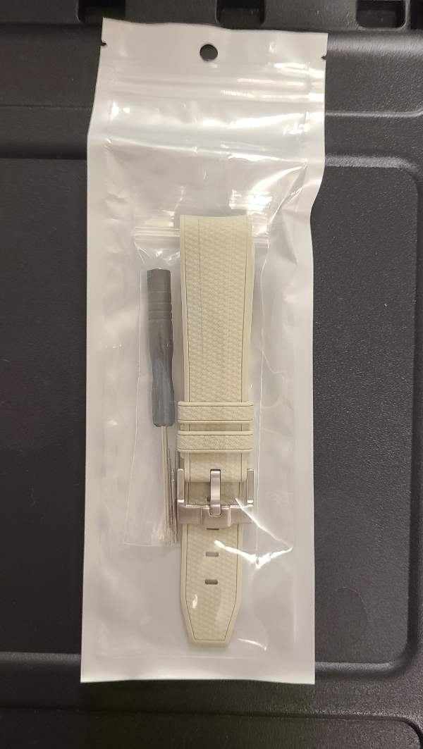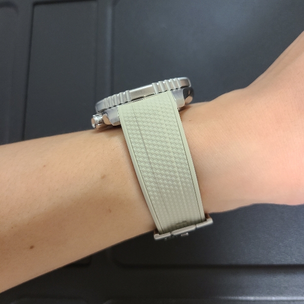 이건 비슷한 디자인(오메가 스타일)의 러버 스트랩입니다만, 러그 부분이 일자라서 일체감이 느껴지지는 않습니다. 색은 제가 생각하던 카키색이라서 마음에 들었지만, 이것저것 바꿔가며 새로운 조합을 만들어보고 있습니다.