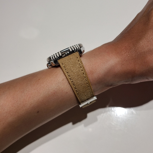 기존에 매치해두었던 시계줄은 밝은 베이지색의 세일클로스 스트랩이었습니다. 이름만 들어도 바다 느낌이 물씬 납니다. 하지만 이제 슬슬 추워질 날씨를 대비해야지요.