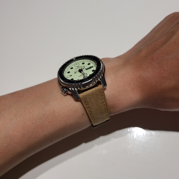 여름이 지나가고 있습니다. 저의 물놀이 시계들도, 다이버 워치들도 이제 슬슬 보관함에 잠들 시간입니다. 그래도 다이버워치는 종종 캐주얼하게 사용하고 싶은 마음이 있어서, 캔버스 소재의 시계줄을 한 번 구입해봤습니다.