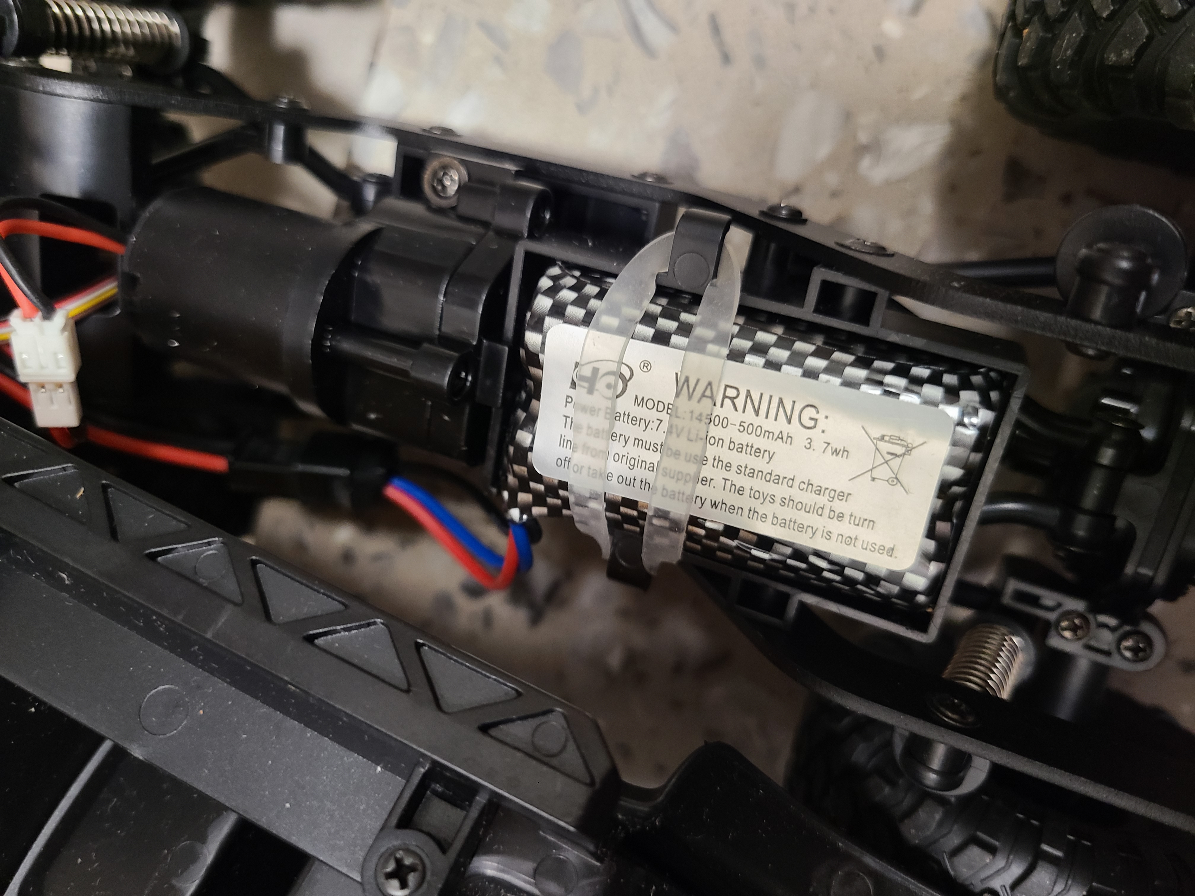지금은 배터리가 고무줄로 나름 탄탄하게 고정이 되어 있는데, 오래 사용하지는 못하겠구나 싶습니다. 배터리는 7.4V짜리 리튬이온 배터리를 사용합니다.